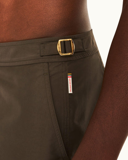 Die Bulldog war unser erstes Badeshorts-Modell. Sie basiert auf dem klassischen Schnitt von Anzughosen und ist aus sechzig Bestandteilen gefertigt, während unsere OB-typischen verstellbaren Seitenschnallen für die optimale Passform sorgen. Das mittellange Design ist für alle Körperformen und -größen geeignet. Nicht nur Badeshorts, sondern Shorts, in denen man auch schwimmen kann.