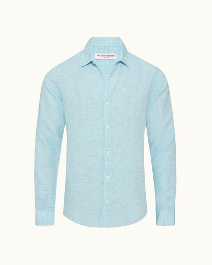 Das Giles Shirt macht bei jedem Anlass eine gute Figur. Es ist aus leichtem Leinenmaterial gefertigt und überzeugt dank dem weißen und blauen Schussfaden mit einem texturierten Look. Die körperbetonte Passform und der klassische Kragen sind nur zwei der unverkennbaren Merkmale des Giles. Ärmel aufschlagen, einen Knopf öffnen und das Urlaubs-Feeling genießen.