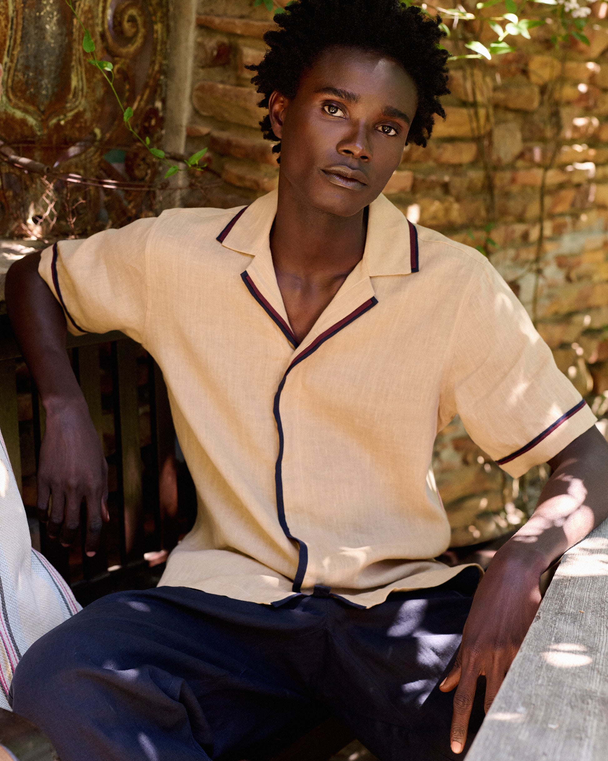 Unser Maitan Shirt spielt mit Farbe und Form. Die Grundfarbe Biscuit Beige wird durch die Einfassungen in Damson Red und dunklem Navy an Knopfleiste, Capri-Kragen und Bündchen hervorgehoben. Auch der Komfort kommt bei diesem kurzärmligen Shirt aus italienischem Leinenmaterial nicht zu kurz. Das vorgewaschene Finish verleiht dem Gewebe einen weichen und natürlichen Look.