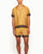 The gold and black colour palette of our capri collar Maitan shirt nods to villain Auric Goldfinger's suit when he's close to lasering Sean Connery's 007 in the famous 'Goldfinger' (1964) scene. If you look closely at the luxe silk fabric, you'll notice the '00' of the 007 logo repeated on the gold-tinted fabric. The black border hem is based on our inimitable cravat design, combined with the iconic 007 logo.