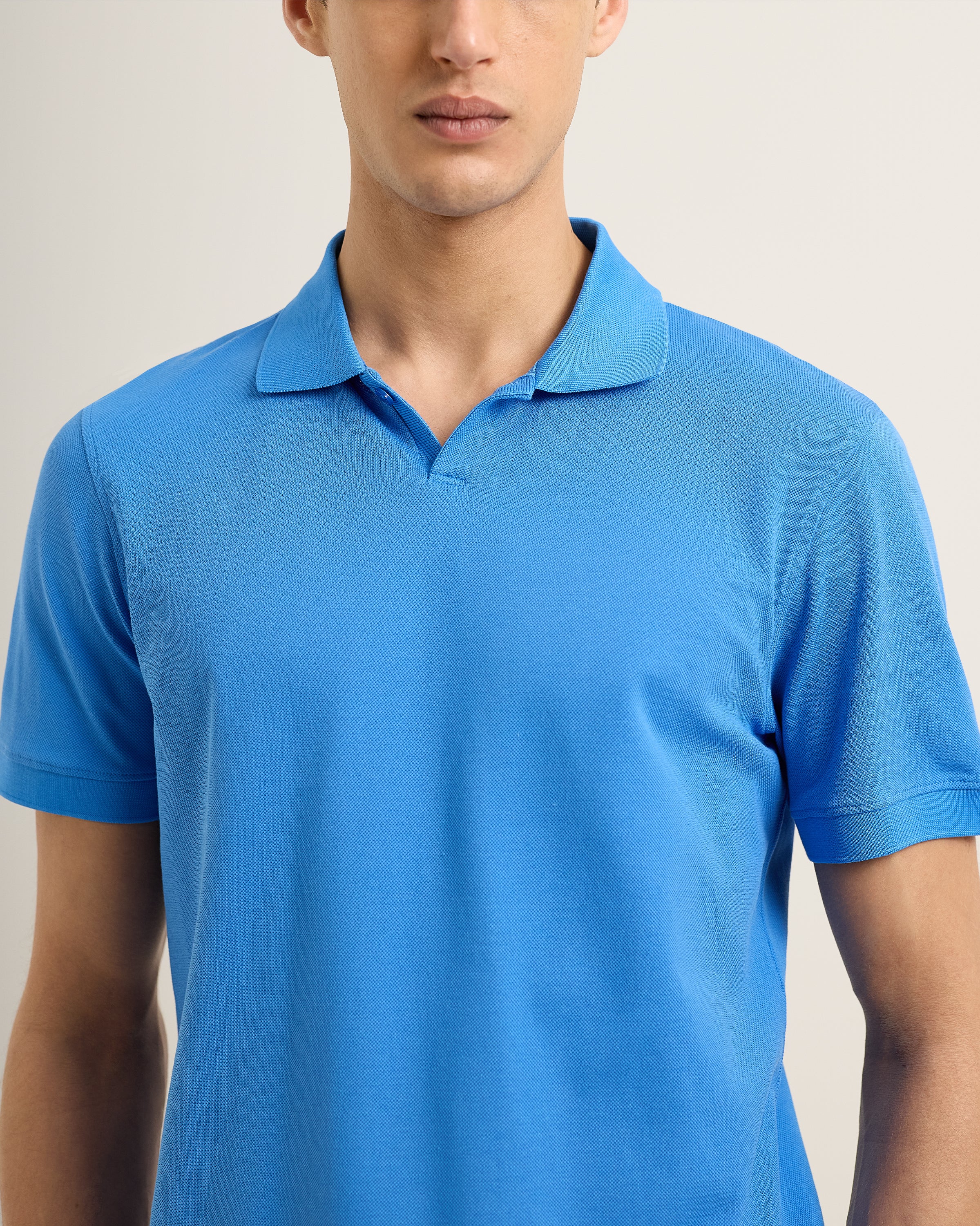 In his other hand, a glass frosted with the cold kiss of the season—part gin, part tonic, part whispered vow of adventure—glitters under the sun. The ice cubes jostle like little Arctic explorers, discovering new frontiers in the swirl of citrus and juniper. The first sip tastes of a thousand unhurried pleasures waiting to be devoured. It’s the initial overture of a symphony called Vacation. The Bruno exists in that space between effort and ease. Italian-crafted pique, soft enough to forget, structured enough to impress. The single-button placket, an invitation to let the day unfold as it pleases.