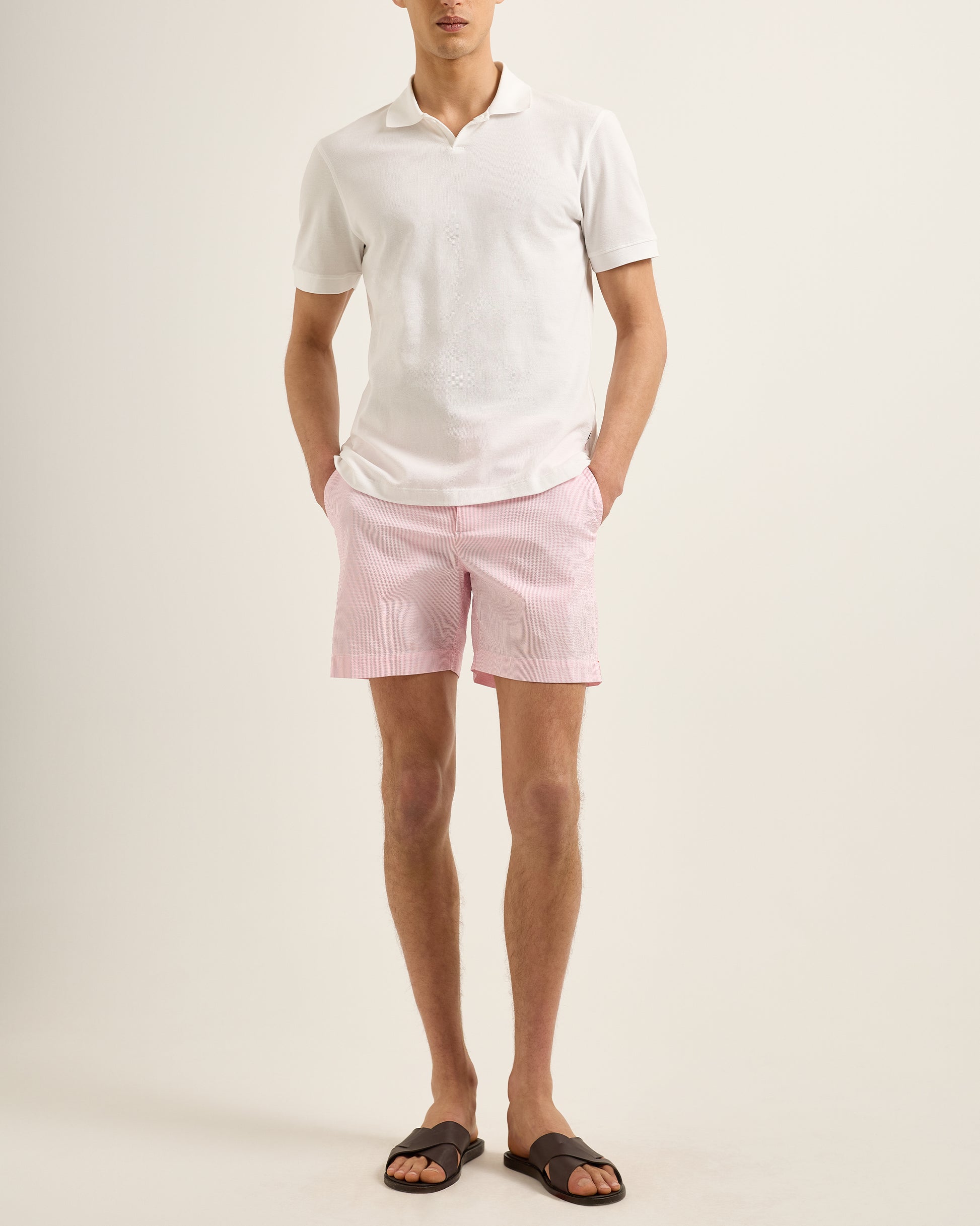 The Bruno exists in that space between effort and ease. Italian-crafted pique, soft enough to forget, structured enough to impress. The single-button placket, an invitation to let the day unfold as it pleases.