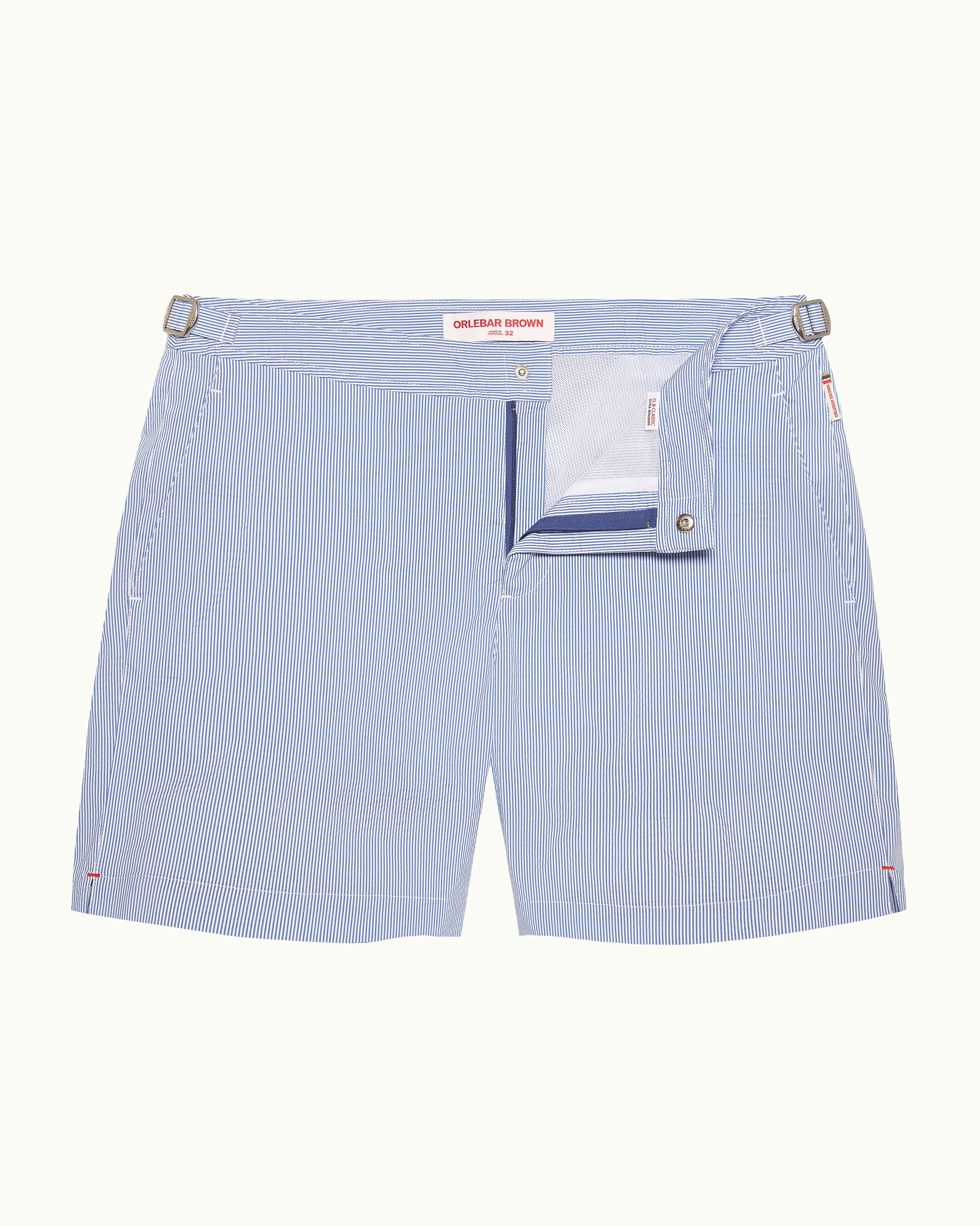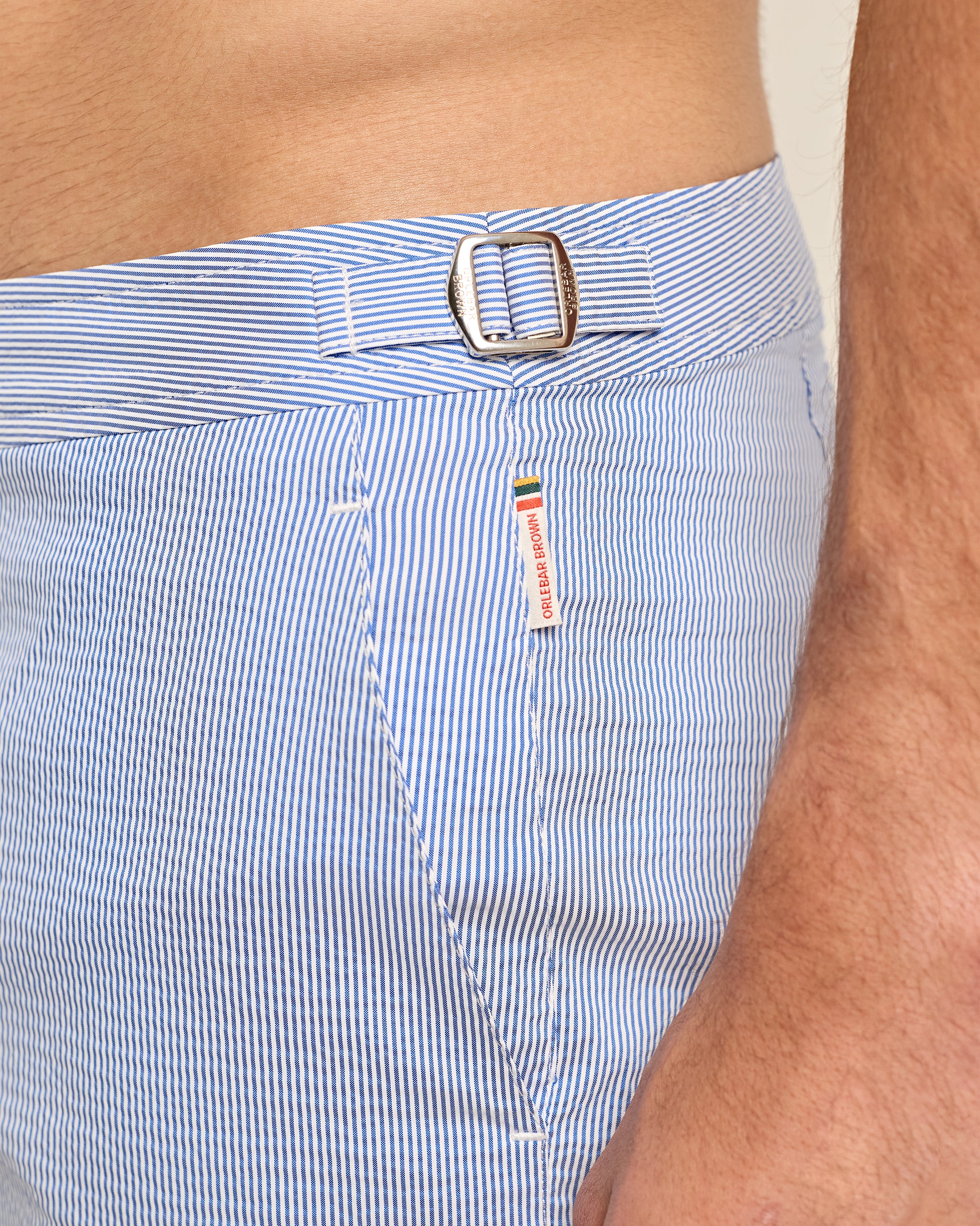 • Textured stripe fabric, woven in Italy (34% polyester, 34% polyamide / nylon, 32% elastomultiester)