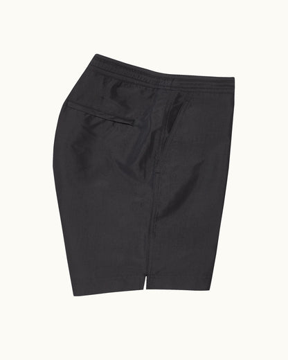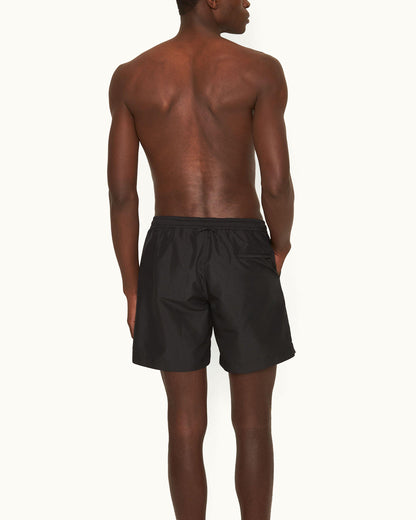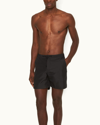 We've made some elevated updates to these Bulldog swim shorts. In place of the style's signature side fasteners, we've opted for a sporty rope-style drawcord. Plus, the elevated black-tonal eyelets and drawcord ends blends against the black colourway. The smooth nylon fabric is lightweight, quick-drying, and recycled for a comfy, mindful swim.