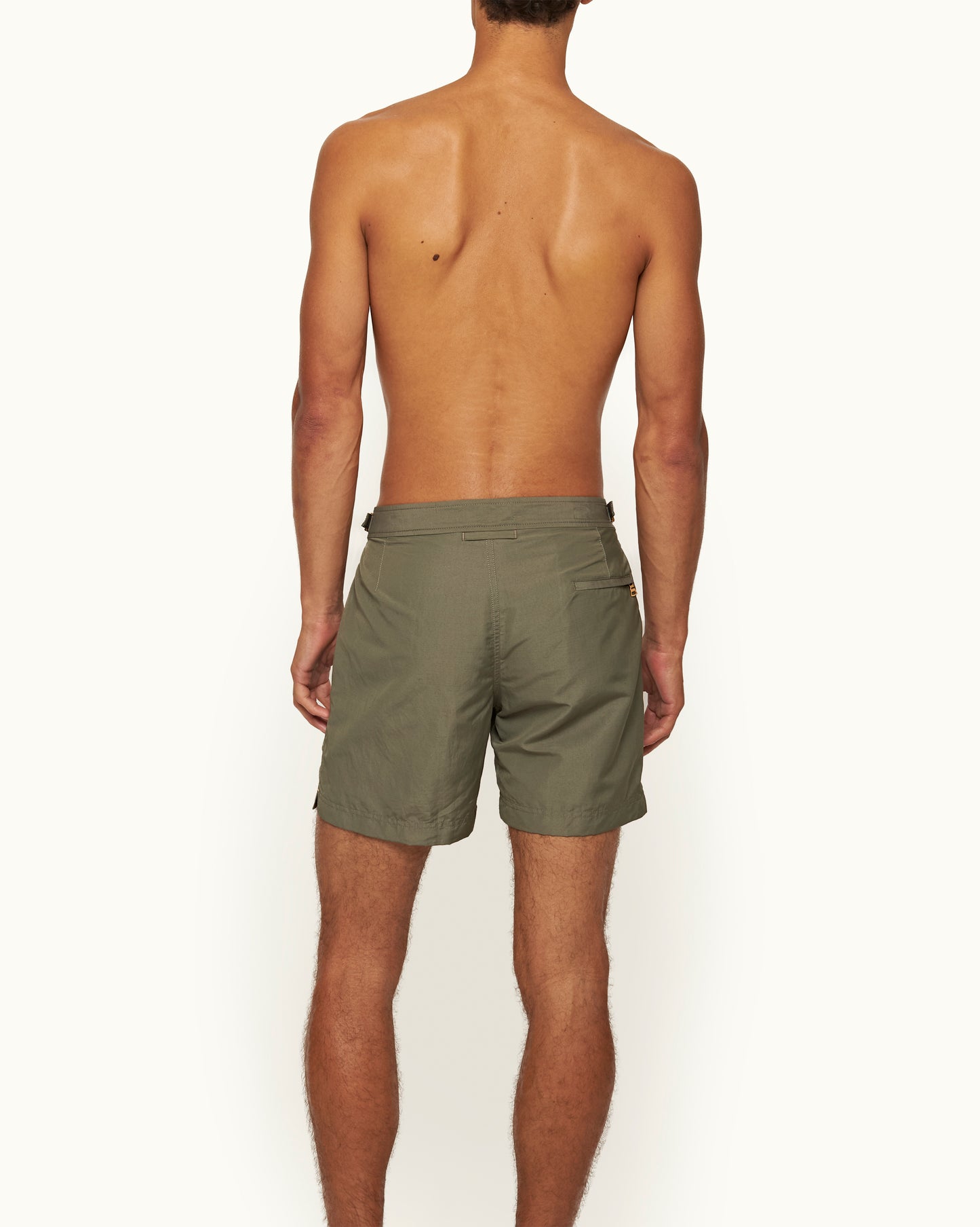 The Bulldog was our first style of swim shorts. It's based on the pattern of traditional tailored trousers and comprises sixty elements, with signature adjustable side fasteners for the best fit. The mid-length design is suited to all shapes and sizes. The Bulldog isn't just a swim short—it's a short you can swim in.