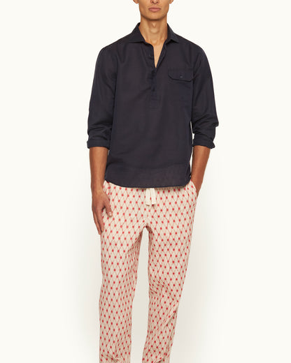 Our overhead Cesare navy shirt is a true holiday essential, with relaxed tailoring and adaptable fabric. In a premium blend of cotton and linen, the Italian weave is both breathable and lightweight with moisture-wicking abilities - great for changeable climes. It's styled with a practical three-button placket and a modern cutaway collar. Turn up the cuffs, loosen a button, and you're ready to go.