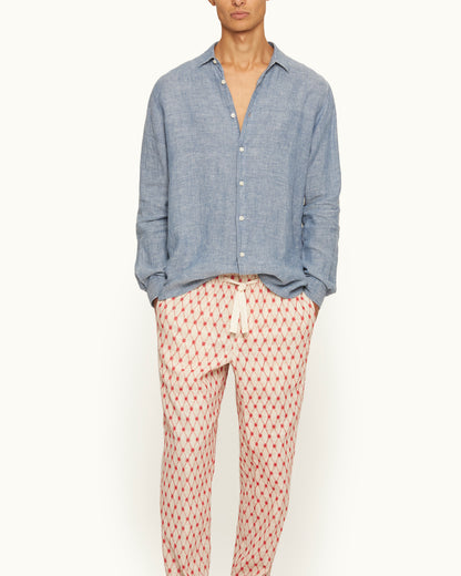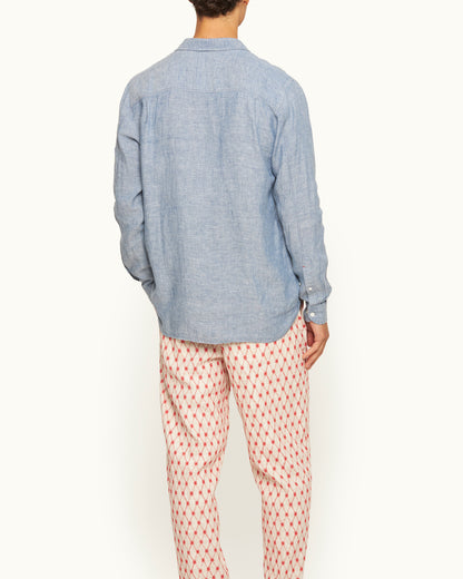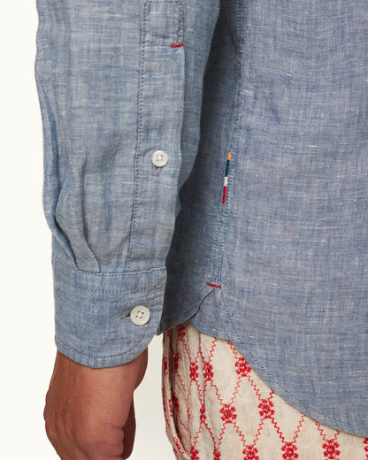 Our Justin shirt is effortless and versatile, perfect for your laidback pursuits. It's made from a mixed blue and white linen chambray weave for a unique, textured appearance and a naturally comfortable fit. Layer it over a classic T-shirt or wear it with several buttons loose when the sunlounger calls.