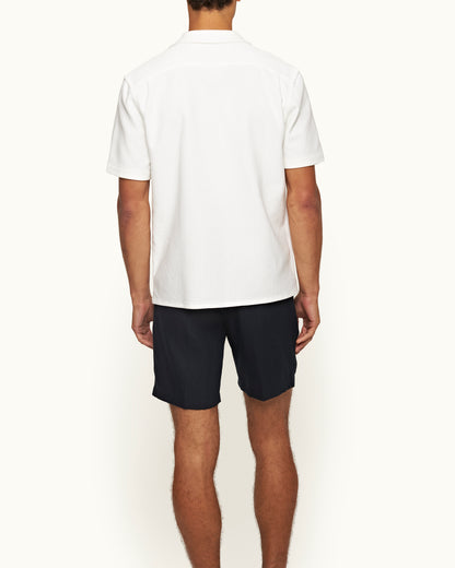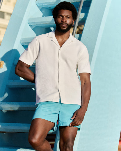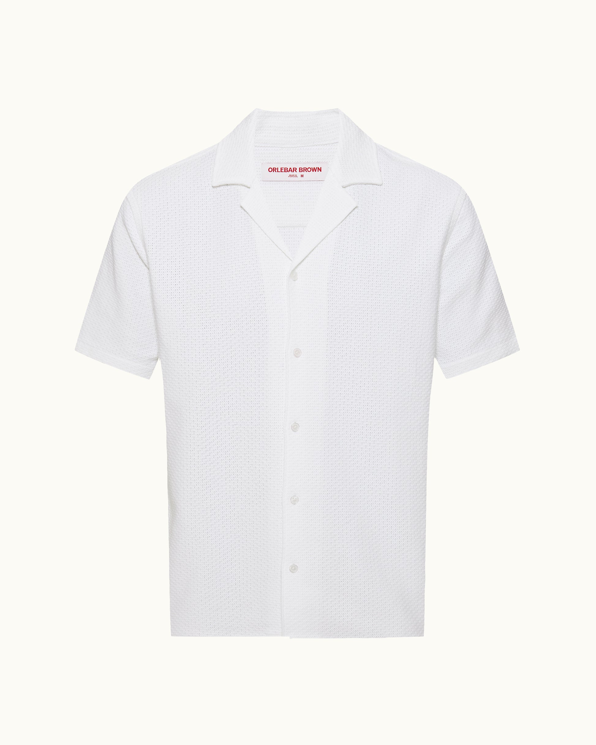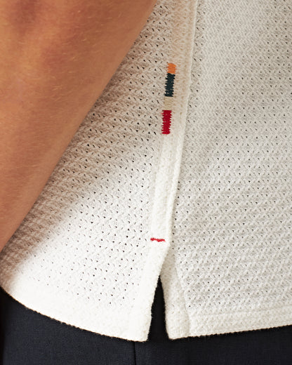 Our white Maitan shirt keeps it simple with just enough detail to keep things interesting. We've used an open-style weave in premium Italian cotton, resulting in an extra breathable feel with an attractive textured finish. The shirt also includes Capri collar, split hem, and a concealed button placket for a clean silhouette, all signature features of the Maitan.