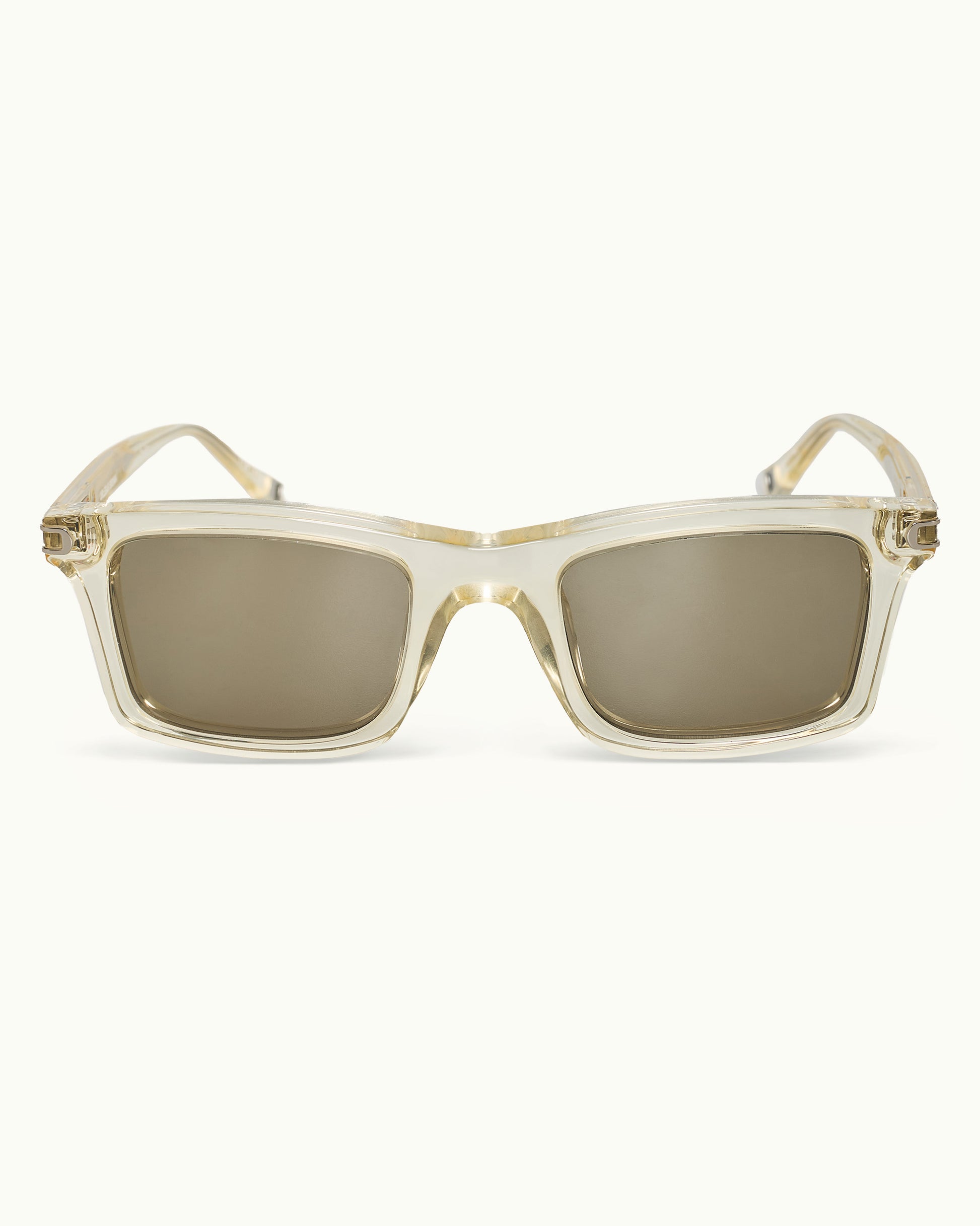 Some faces belong on posters. Some summers feel like scenes. You step from the dockside café into full sun, lenses dark against the gleam of water and applause of gulls. You’re not performing - but if someone were watching, it wouldn’t hurt. The Sam carries that kind of gravity. A vintage rectangle, square-jawed and debonair, drawing from JFK’s quiet steel and Dickie Greenleaf’s studied ease. The frame is bold but balanced, the browline strong without shouting. A silhouette that doesn’t chase attention - it commands it. A shadow falls. You turn slightly. Nothing to prove. Iconic doesn’t ask. It answers. Feel Summer.