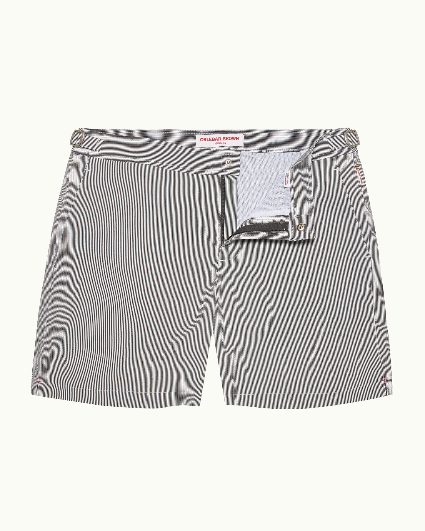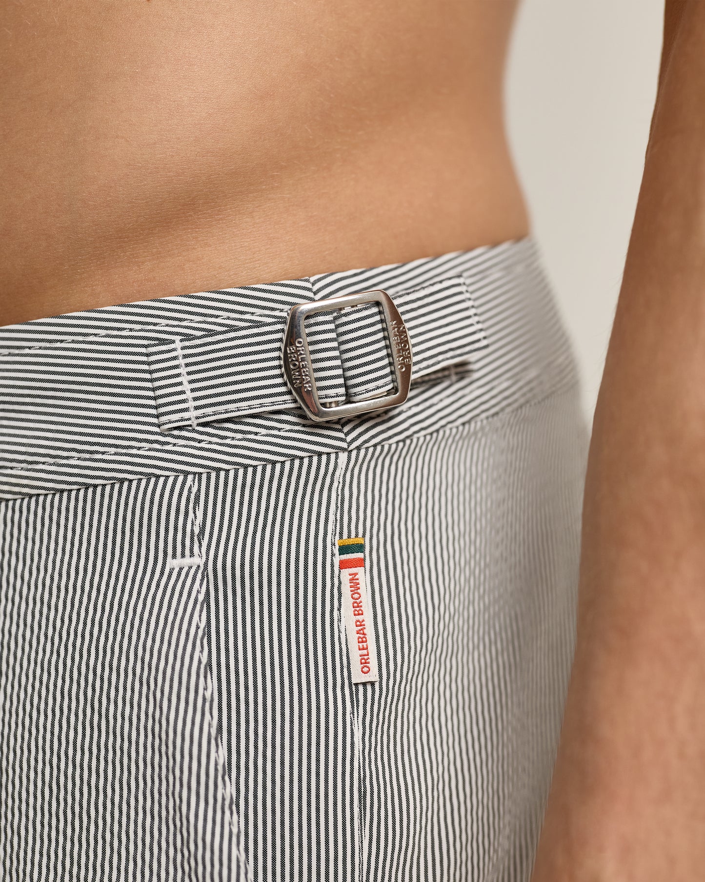 • Textured stripe fabric, woven in Italy (34% polyester, 34% polyamide / nylon, 32% elastomultiester)