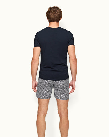 Everyone has a favourite T-shirt. For us at Orlebar Brown it is the round neck OB T. Created exactly right, the OB T has a lean yet relaxed fit, curved shaped hem and is made from a super soft cotton. The perfect companion for any holiday – a classic t-shirt.