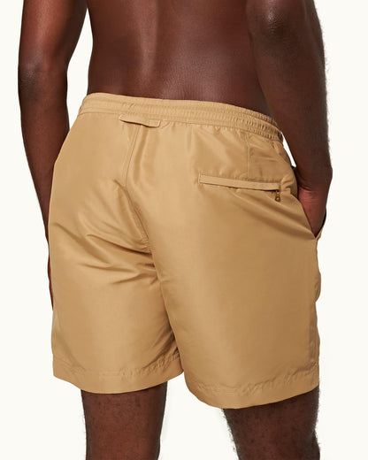 These Bulldog swim shorts in Biscuit Beige have a drawcord waistband instead of the usual side fasteners, giving you the same great fit with a more athleisure appearance. This modern style is complete with a tubular drawcord and branded gold-effect eyelets and drawcord ends.