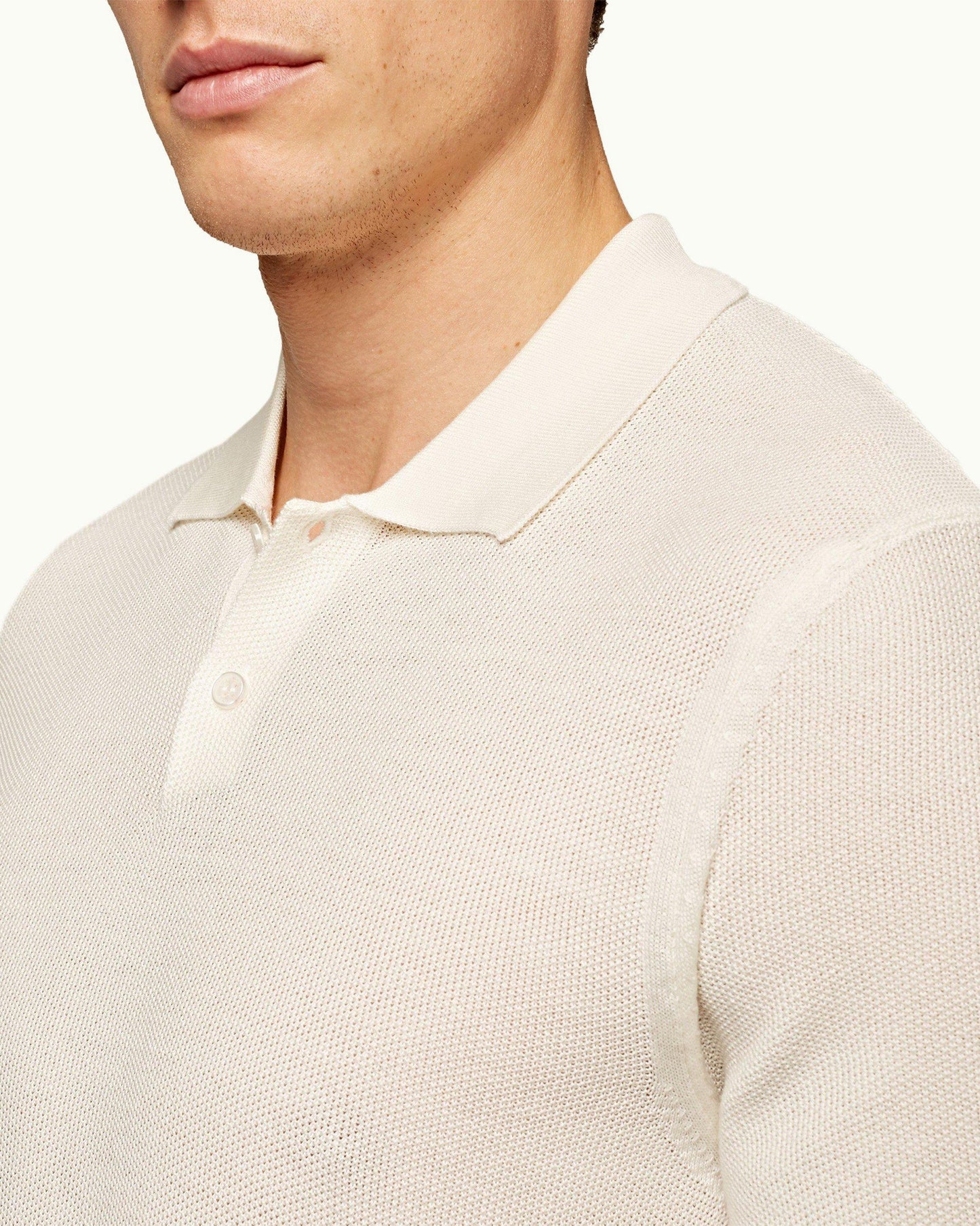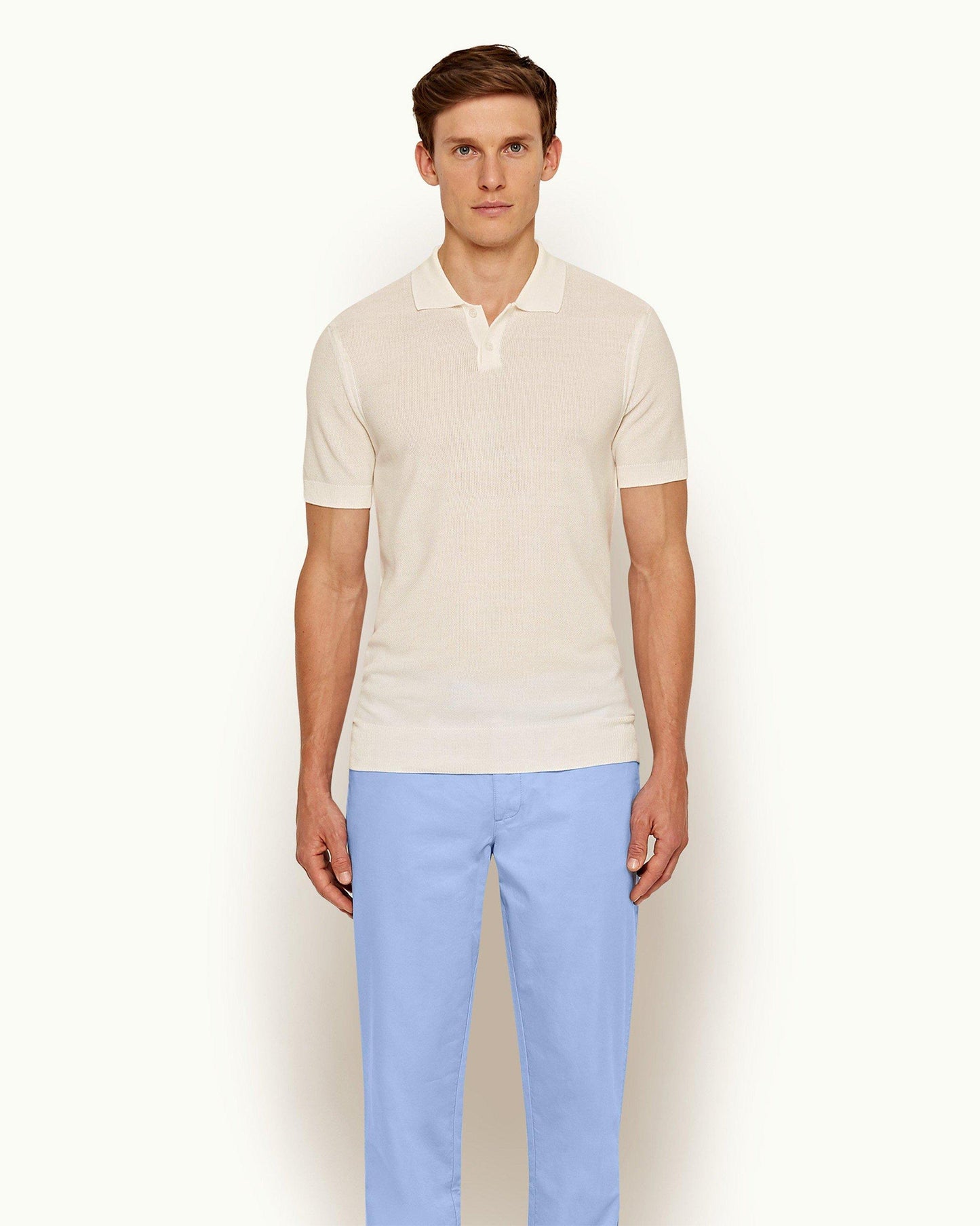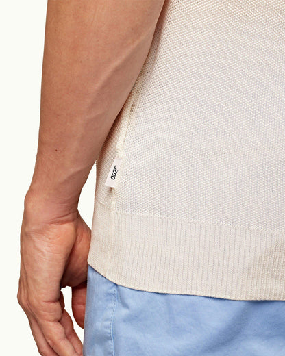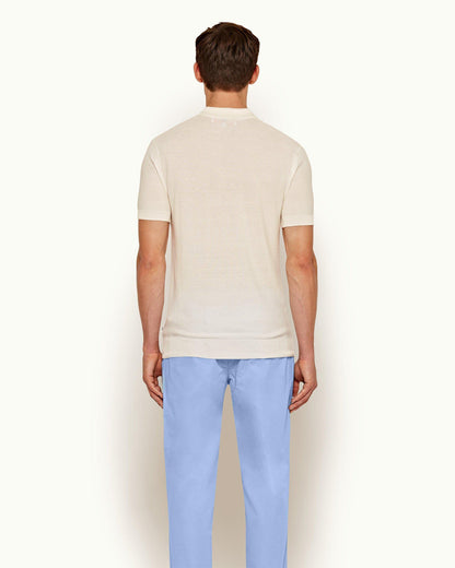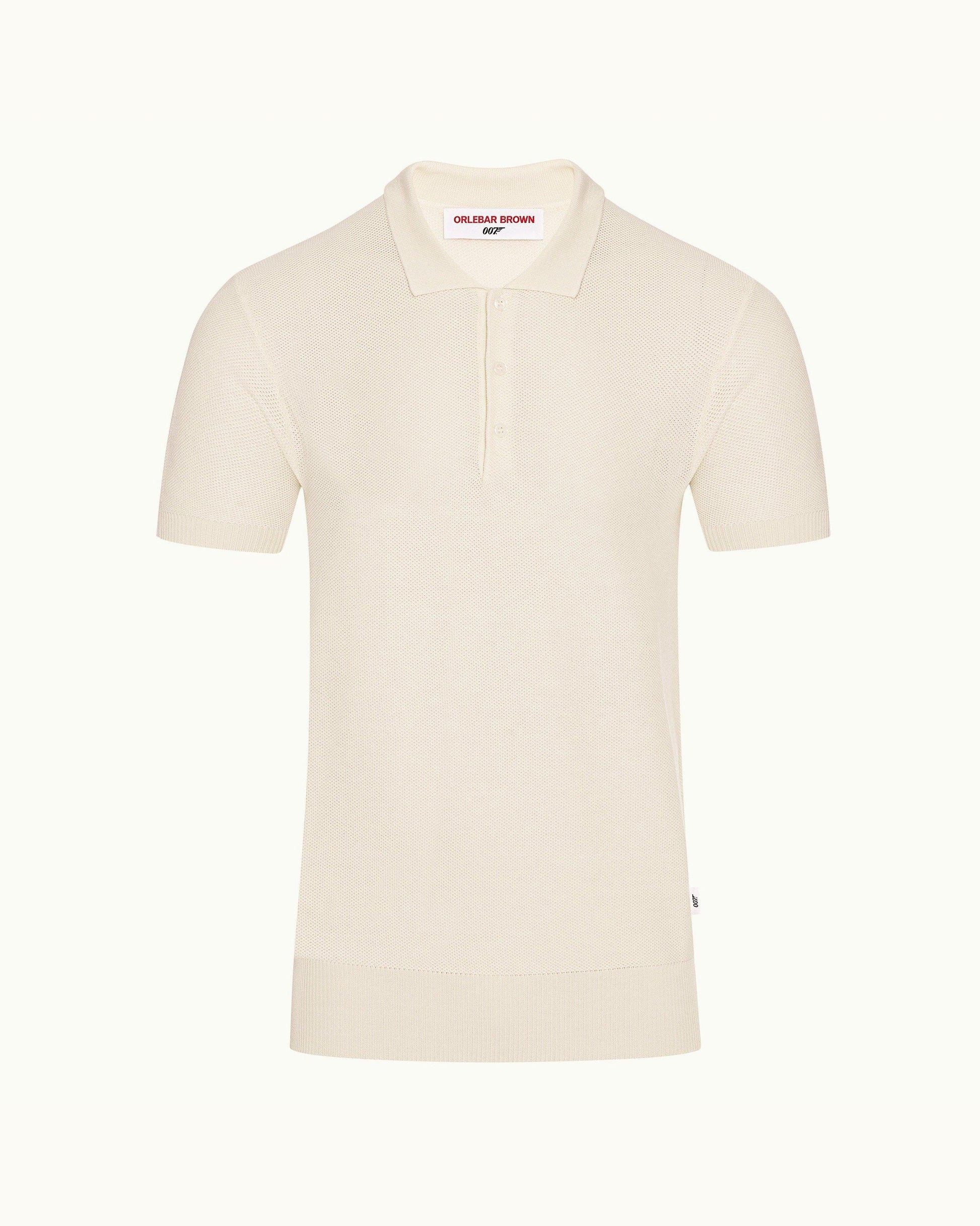 Inspired by Bond’s classic beach style, this timeless Italian polo shirt in ivory cotton-silk is smooth, lightweight and breathable; a must-have for elevated holiday wear.