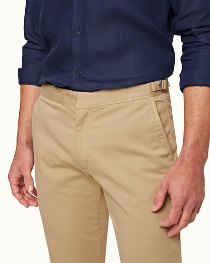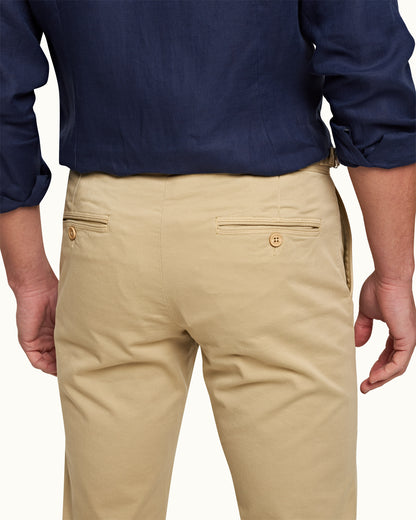 These tailored-fit Fallon trousers give you the perfect fit, thanks to the light and flexible stretch cotton. Our Sand Dune colourway boasts reinforced pocket openings, signature side fasteners, and a garment-dyed appearance for a casual look.
