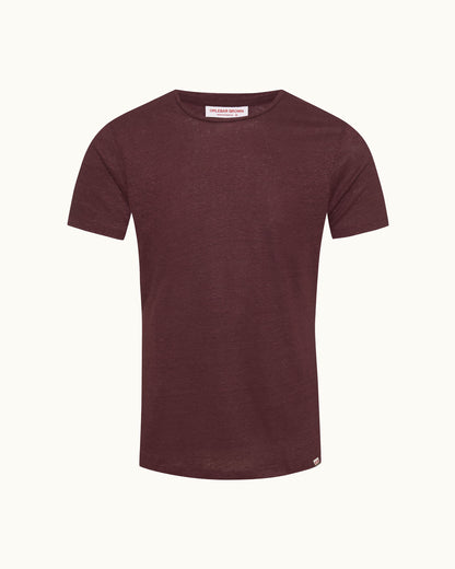 Our crewneck OB-T Linen is a holiday favourite. It's made from the lightest Italian linen that drapes effortlessly, ensuring you feel cool and comfortable throughout the day. This short-sleeved T-shirt's rich Damson hue is instantly flattering.
