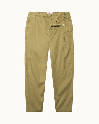 Nuestros pantalones Alex te facilitarán tus conjuntos de vacaciones. El corte informal y el tejido de algodón elástico demuestran que tu confort es una prioridad. Por su parte, el efecto teñido en prenda potencia el verde tierra Agave. Hemos rematado este modelo con una cómoda cintura elástica con cordón.