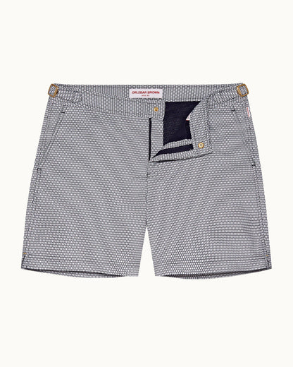 Descubre la versión sofisticada de nuestros bañadores con los suntuosos shorts de baño Bulldog Fenella. El elegante patrón de jacquard se ha tejido en Italia para conferirles un suntuoso acabado con textura. El cierre a presión de efecto dorado y los cierres laterales ajustables aportan un cierto brillo al modelo. Estos shorts son perfectos para ir al club de playa o comer en el resort.