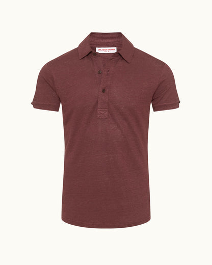 Nuestro polo Sebastian es un modelo distintivo, que nos gusta rediseñar todas las temporadas con tonos favorecedores. El favorecedor rojo Damson de este Sebastian aporta intensidad a cualquier conjunto. Está confeccionado con un ligero punto de lino para que te sientas cómodo en todo momento, sean cuales sean tus planes. La distintiva tapeta de tres botones y el corte entallado te garantizan que siempre estarás impecable.