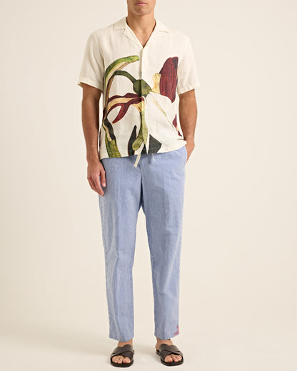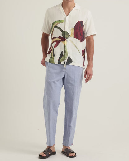 The Alex Trouser, lightweight, fine weave. Half elasticated waist with a chic drawcord. A relaxed fit that never feels careless, cut for days that unspool at their own pace. No rules, no obligations - just the simple pleasure of being exactly where you are.
