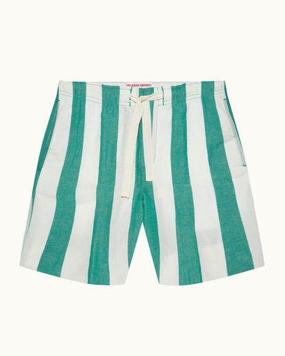 L’imprimé Deckchair Stripe - structuré juste ce qu’il faut pour contenir le chaos sans jamais essayer de le dompter. Un imprimé qui montre que la perfection est surfaite et que les meilleurs moments se nichent quelque part entre les lignes. Le short Alex, léger, à maille fine. Taille semi-élastiquée avec un cordon de serrage élégant. Une coupe décontractée qui ne fait jamais négligé, conçue pour les journées qui se déroulent à leur propre rythme. Aucune règle, aucune obligation, juste le plaisir simple d’être exactement où vous êtes.
