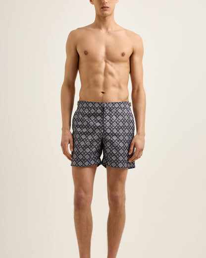 L’eau est immobile, comme si elle attendait. Le sentier disparaît derrière vous dans les pins. En contrebas, la crique s’enfonce dans le littoral comme on ne l’aurait jamais imaginé : une découpe nette et délibérée de la terre, à moitié dans l’ombre. Ici, il n’y a personne. Juste le murmure des vagues se brisant contre les rochers et l’air vif et salé qui remplit vos poumons. Vous retirez votre chemise. Vous retenez votre souffle. Vous avancez jusqu’au bord, cela va de soi. La vie est courte, comme nos shorts. Le Bulldog sait exactement la raison de sa présence. Taillé comme votre plus beau pantalon, séchant en un éclair, assez raffiné pour passer de la plage à la table sans transition. Les boucles d’ajustement latérales mettent la touche finale. La silhouette impeccable fait tout le reste. Aucun compromis. Aucune distraction. Juste de la détermination, magnifiquement réalisée. Conçu pour l’aisance. Optimisé pour l’impact. Pas un simple maillot de bain. Un entre-deux au style affirmé.