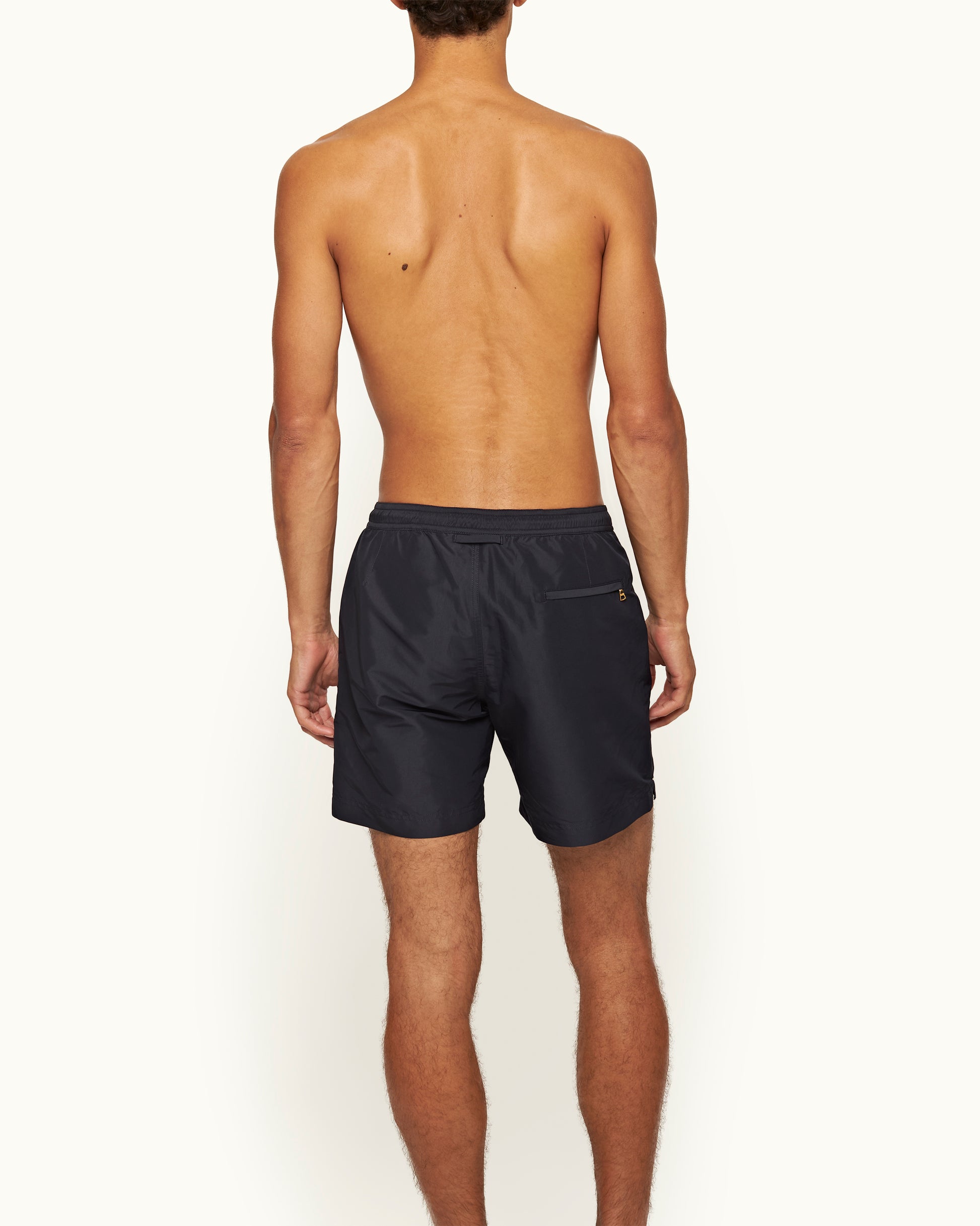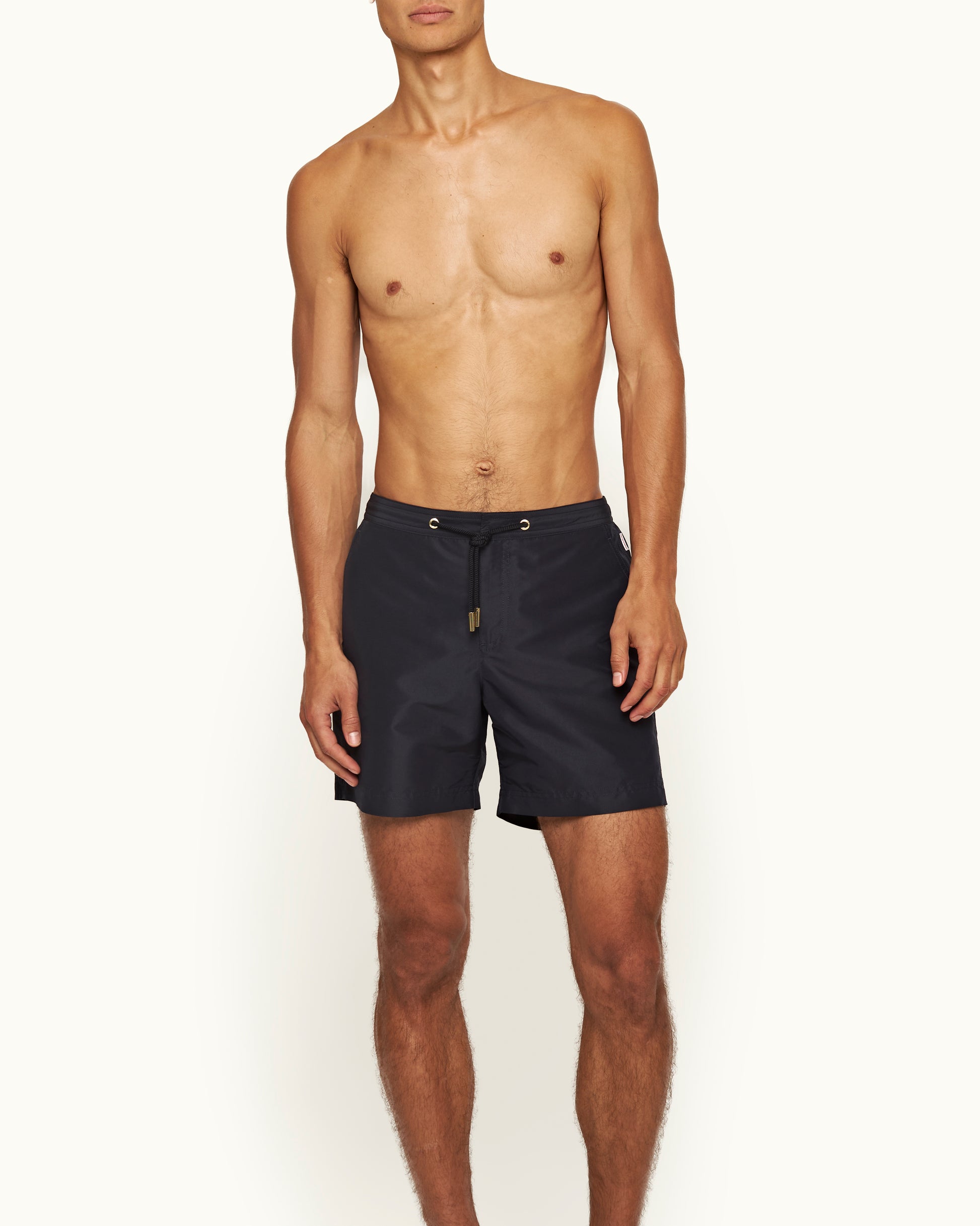 Sur ce short de bain Bulldog, nous avons remplacé les boucles d’ajustement latérales caractéristiques de ce modèle par un cordon de serrage effet corde moderne. Les œillets et les embouts en métal doré créent un beau contraste avec la teinte bleu marine profond, tandis que le tissu recyclé doux vous permet de nager de manière plus responsable.