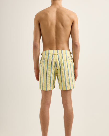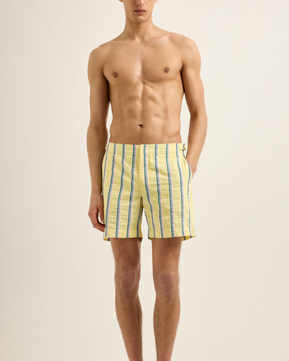 L’eau est immobile, comme si elle attendait. Le sentier disparaît derrière vous dans les pins. En contrebas, la crique s’enfonce dans le littoral comme on ne l’aurait jamais imaginé : une découpe nette et délibérée de la terre, à moitié dans l’ombre. Ici, il n’y a personne. Juste le murmure des vagues se brisant contre les rochers et l’air vif et salé qui remplit vos poumons. Vous retirez votre chemise. Vous retenez votre souffle. Vous avancez jusqu’au bord, cela va de soi. La vie est courte, comme nos shorts. Le Bulldog sait exactement la raison de sa présence. Taillé comme votre plus beau pantalon, séchant en un éclair, assez raffiné pour passer de la plage à la table sans transition. Les boucles d’ajustement latérales mettent la touche finale. La silhouette impeccable fait tout le reste. Aucun compromis. Aucune distraction. Juste de la détermination, magnifiquement réalisée. Conçu pour l’aisance. Optimisé pour l’impact. Pas un simple maillot de bain. Un entre-deux au style affirmé.
