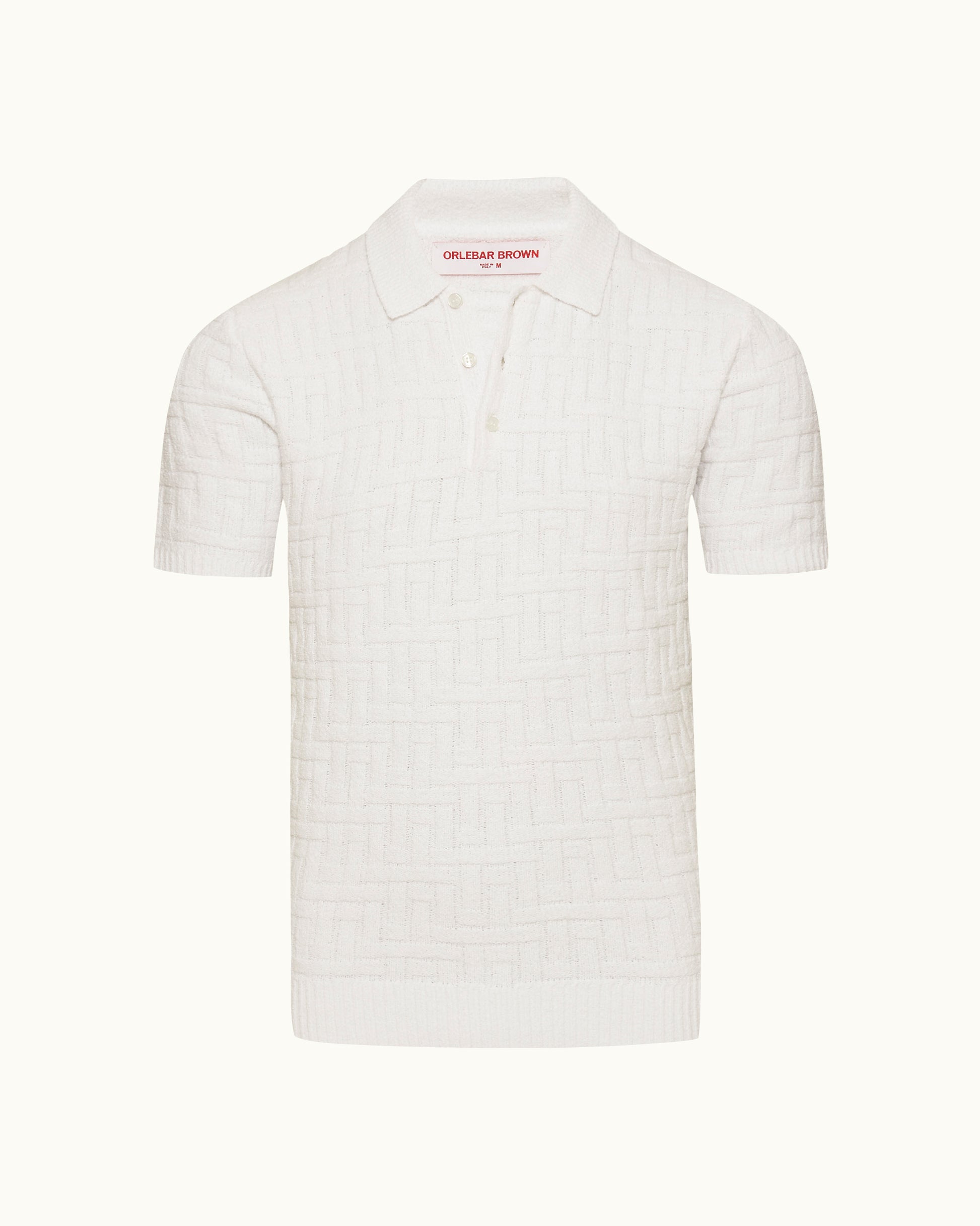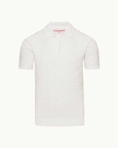 Notre modèle Burnham réinvente le polo classique avec une touche contemporaine inattendue. Tricoté en Italie, le mélange de jacquard bouclé tout doux dessine un motif treillis intéressant qui ajoute texture et profondeur au fond blanc épuré. La patte avec trois boutons griffés polis offre une polyvalence intemporelle, tandis que la construction entièrement façonnée assure une qualité durable.