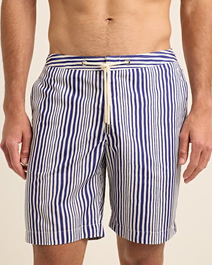 L’eau déferle à vos pieds, lente et déterminée. Un peu plus loin, les chutes grondent et vous incitent à avancer jusqu’à elles par leur seule force d’attraction. Vous vous penchez en arrière, les bras écartés, flottant sur la frontière entre le mouvement et l’immobilité, là où le courant vous retient sans jamais vous emporter. Le monde d’en bas se perd dans la brume. Au-dessus, le ciel s’étire à l’infini. Le Dane à cordon de serrage possède le même équilibre tranquille. Un short de bain ajusté, raffiné mais sans contraintes, une longueur supérieure lui donnant de la prestance et un cordon de serrage résistant aux courants. Pas d’encombrement, pas d’excès - juste une pièce conçue pour le genre de journées qui vous invitent tout simplement à lâcher prise.