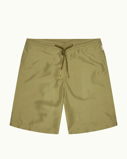 L’eau déferle à vos pieds, lente et déterminée. Un peu plus loin, les chutes grondent et vous incitent à avancer jusqu’à elles par leur seule force d’attraction. Vous vous penchez en arrière, les bras écartés, flottant sur la frontière entre le mouvement et l’immobilité, là où le courant vous retient sans jamais vous emporter. Le monde d’en bas se perd dans la brume. Au-dessus, le ciel s’étire à l’infini. Le Dane à cordon de serrage possède le même équilibre tranquille. Un short de bain ajusté, raffiné mais sans contraintes, une longueur supérieure lui donnant de la prestance et un cordon de serrage résistant aux courants. Pas d’encombrement, pas d’excès - juste une pièce conçue pour le genre de journées qui vous invitent tout simplement à lâcher prise.