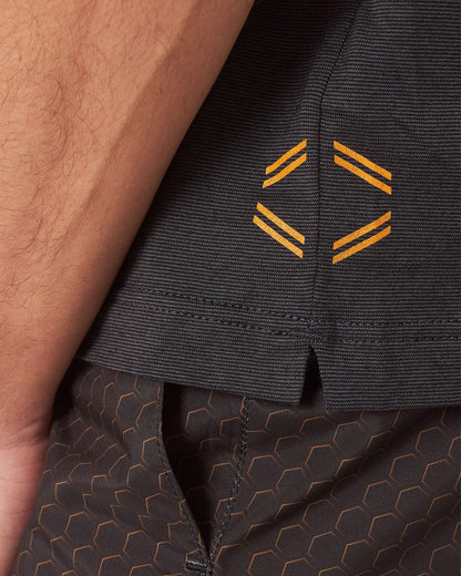 Ce polo Dominic a été audacieusement revisité dans le cadre de notre collaboration avec l’emblématique marque Automobili Lamborghini. La broderie hexagonale sur l’ourlet est directement inspirée de l’élément stylistique qui caractérise le design Lamborghini depuis toujours. Le logo et les détails coloris Arancio Apodis Orange sont empruntés au modèle Revuelto, tandis que la base Green Verde Turbine provient également de la bibliothèque de couleurs Lamborghini. Pour faire ressortir les couleurs, associez ce look à notre short de bain Bulldog Arancio Apodis.