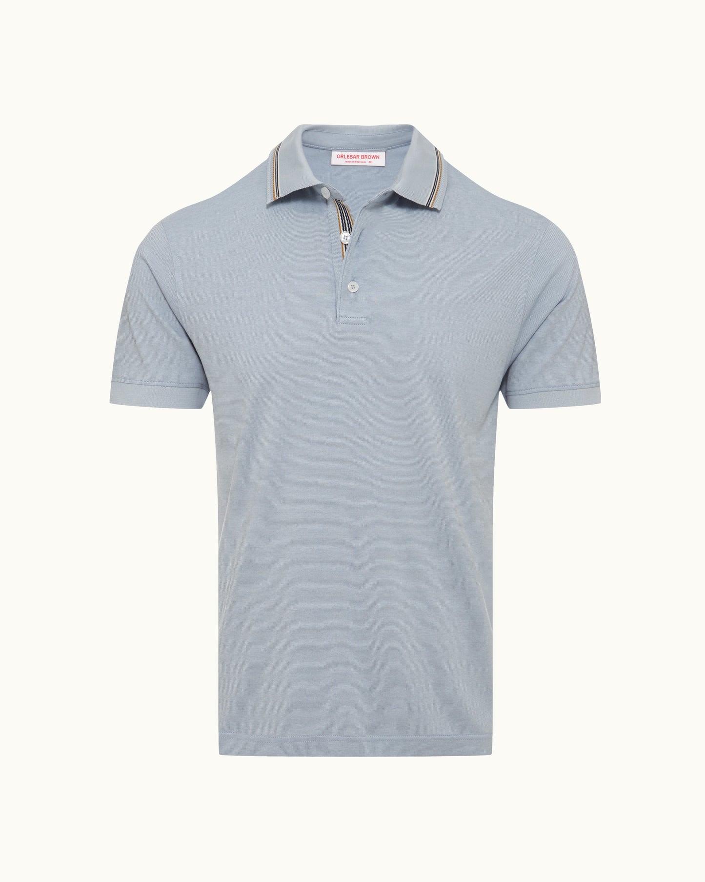 Ce polo Dominic associe une confection classique et une finition OB emblématique - un liseré à rayures saisonnières contrastantes le long du col et de la patte de boutonnage intérieure. Ce polo bleu clair à manches courtes joue la carte de la simplicité avec une patte de boutonnage à trois boutons, une coupe classique et un tissu en jersey respirant confortable toute la journée.