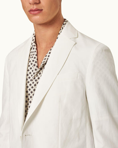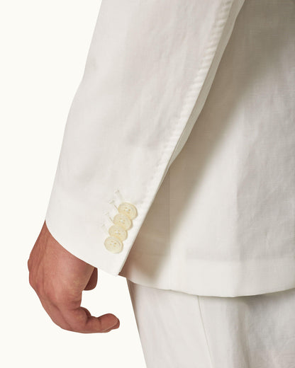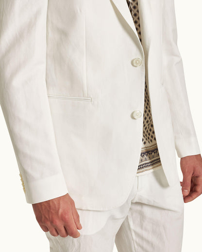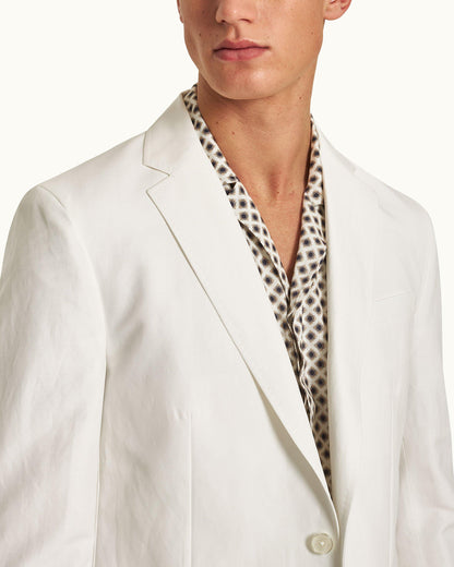 Notre blazer Garret blanc est naturellement stylé. Il présente une coupe ajustée flatteuse avec des revers crantés traditionnels, des boutonnières fonctionnelles et des poches passepoilées étroites. Sa forme déstructurée vous donne une allure décontractée tout en garantissant votre confort. Le mélange de lin et coton à texture flammée donne la touche finale à cette pièce naturellement décontractée.