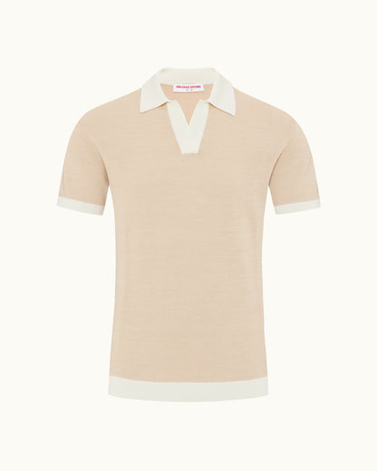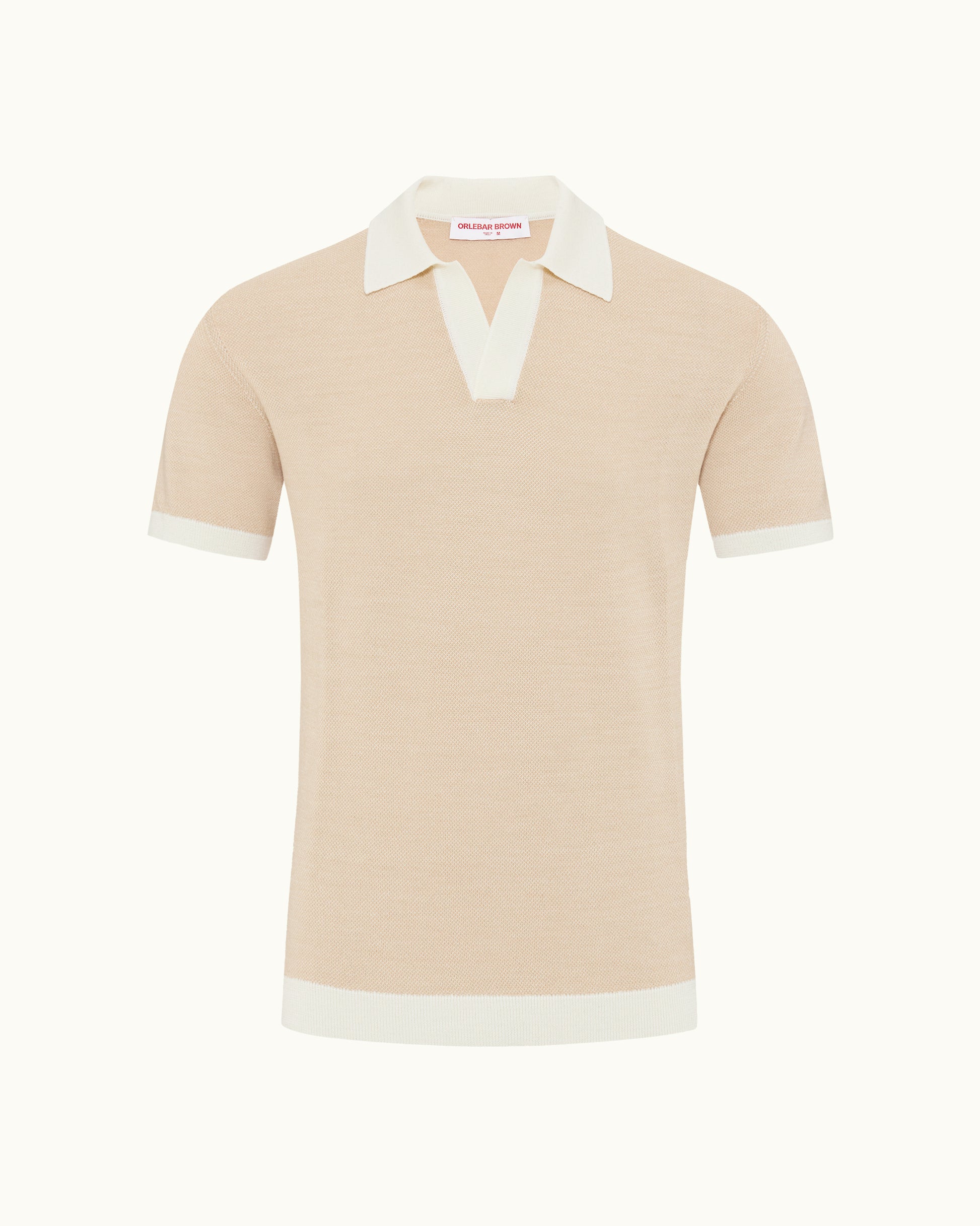 Le polo Horton est un de nos modèles les plus sophistiqués. Entièrement façonné, il affiche une coupe ajustée pour un rendu fluide et naturel. La patte, les poignets et l’ourlet à bords-côtes blancs soulignent joliment le coloris Biscuit. Il est fabriqué dans deux tissus italiens haut de gamme : une laine mérinos respirante et absorbante, et un coton pur très doux.