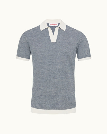 Notre polo Horton joue avec les textures et les couleurs pour un rendu très flatteur. Ce polo en maille à manches courtes est composé d’un corps en laine mérinos toute douce bleu aquatique foncé, et de bords-côtes en coton blanc le long du col, des poignets et de l’ourlet. Complétez ce look raffiné avec un pantalon slim et votre blazer préféré.