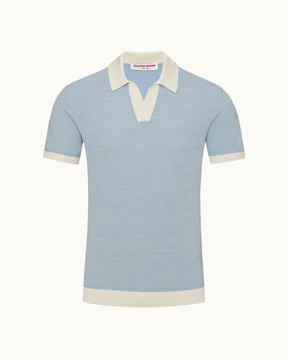 Notre polo Horton se distingue par des lignes audacieuses et des textures luxueuses. Les fils italiens en coton et laine mérinos sont torsadés ensemble pour créer un toucher doux et texturé, tandis que les détails côtelés blancs accentuent la base bleu pâle. Et grâce à notre fameuse coupe ajustée et à nos coutures entièrement façonnées, vous bénéficiez d’un tombé naturel et confortable.