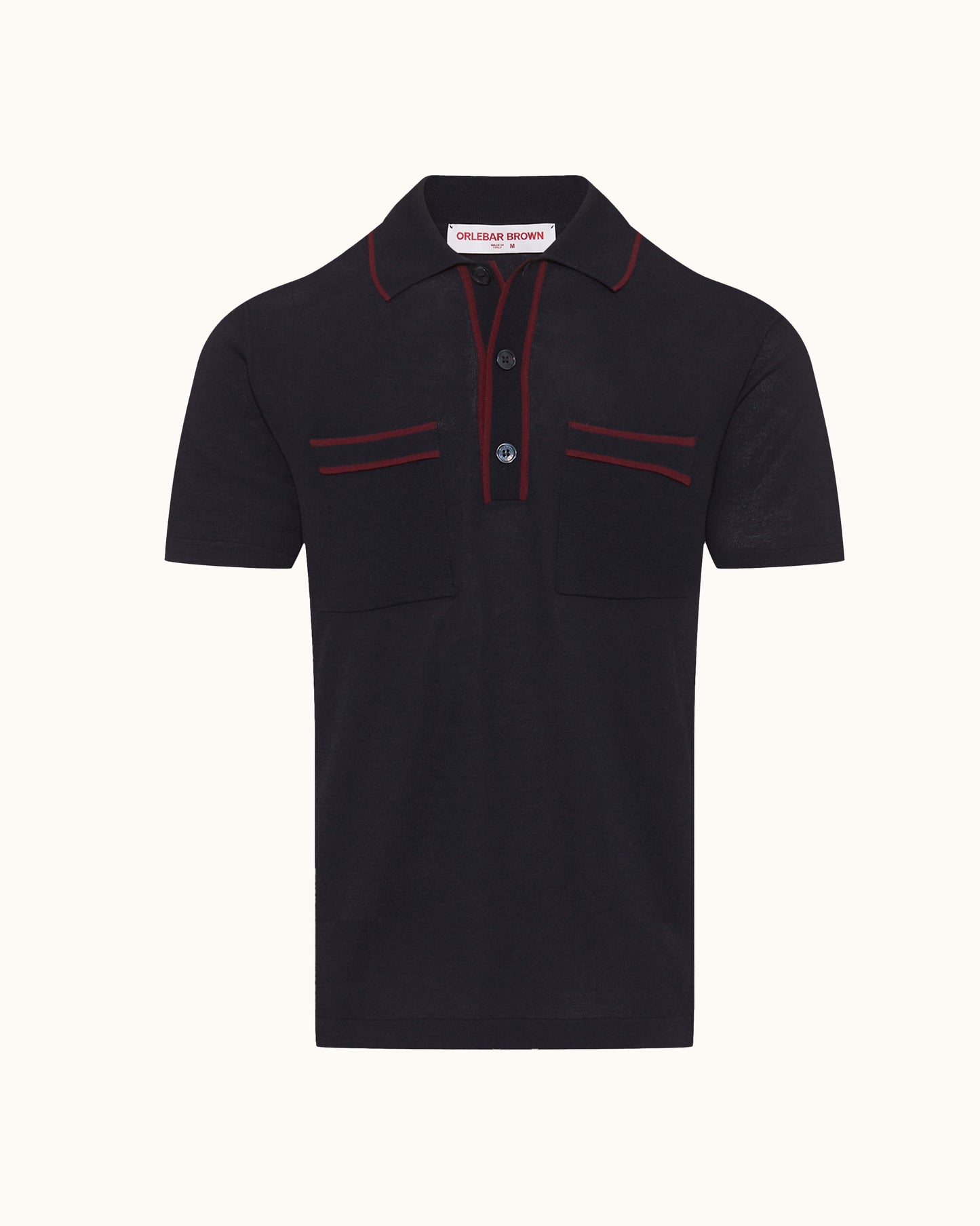Notre polo Keeling bleu marine foncé est une création artistique amusante. Le liseré coloris Damson Red au niveau du col, de la patte et des poches poitrine donne à ce modèle une allure rétro élégante. Douce et luxueuse, la maille italienne en mélange de soie et coton bio en fait une pièce incroyablement confortable. Enfin, la construction entièrement façonnée signe la qualité irréprochable du Keeling.