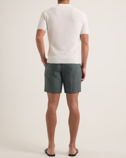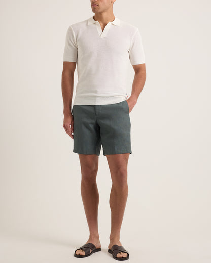 Le soleil de midi s’impose, lourd et doré. Les toits-terrasse en sont baignés - murs blanchis à la chaux, volets peints, lente ondulation du linge se gorgeant de chaleur. Une odeur de poisson grillé et d’herbes sauvages s’invite sur la place, portée par l’air et le faible murmure des voix en contrebas. Nul besoin de se presser, ni même de bouger, seul existe le plaisir tranquille d’être exactement là où vous êtes. Le Norwich a été conçu pour ce genre d’après-midi - Lin tissé en Italie, net mais sans contraintes, taillé avec juste ce qu’il faut de précision pour se sentir bien partout, tout naturellement. Le pli central et les boucles d’ajustement latérales assurent une tenue impeccable, mais qu’en est-il côté sensation ? Le confort à l’état pur. Un short pour les hommes qui savent que parfois, le meilleur programme est celui qui n’existe pas.