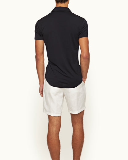 Le Sebastian était notre premier polo ajusté et reste un des modèles les plus plébiscités. Cet élégant modèle ajusté est basé sur les principes des chemises pour homme : col deux pièces élégant, ourlet façonné et poignets boutonnés. La patte profonde à trois boutons crée une coupe ouverte qui n’entrave pas les mouvements.