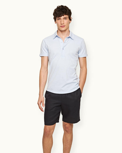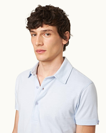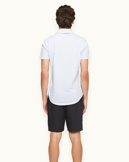 Ajoutez une touche de bleu pleine de fraîcheur dans votre valise pour les vacances avec ce polo Sebastian doux en coton et soie coloris Springfield Blue. Ce tissu luxueux est résistant, respirant et super doux sur la peau.