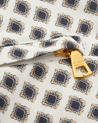 Ce short de bain Setter blanc affiche une allure chic et rétro grâce au motif floral géométrique et à la bordure à rayures cachemire sur l’ourlet. Conçu exclusivement par nos équipes, ce Setter est vraiment unique. Les boucles d’ajustement latérales et la fermeture par bouton-pression en métal doré brillant complètent l’imprimé et le mettent en valeur. De plus, le tissu léger à séchage rapide vous offre un confort qui dure toute la journée au bord de la piscine, et une approche plus durable des maillots de bain.
