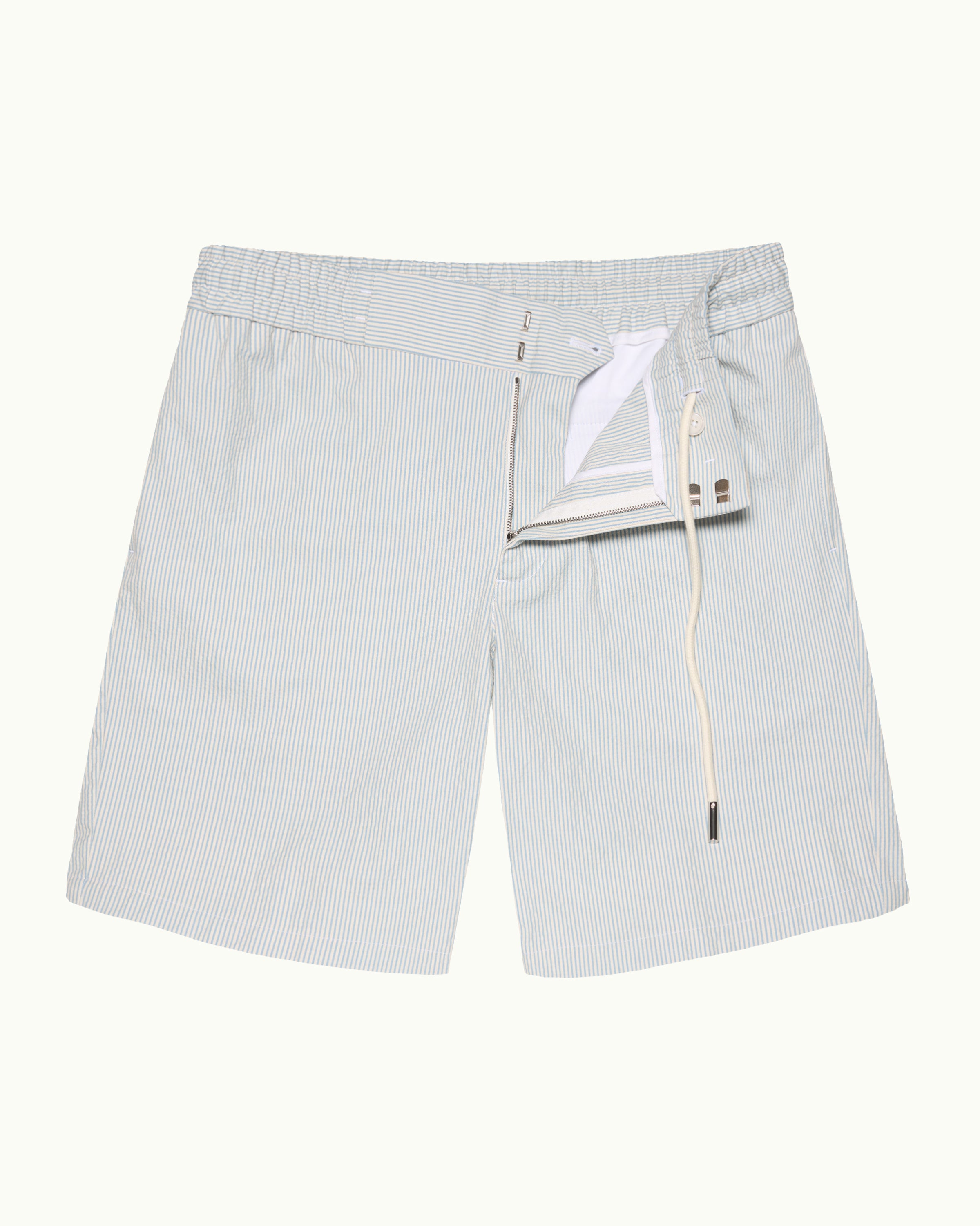 • Striped seersucker, woven in Italy (93% cotton, 4% polyamide/ nylon, 3% elastane)