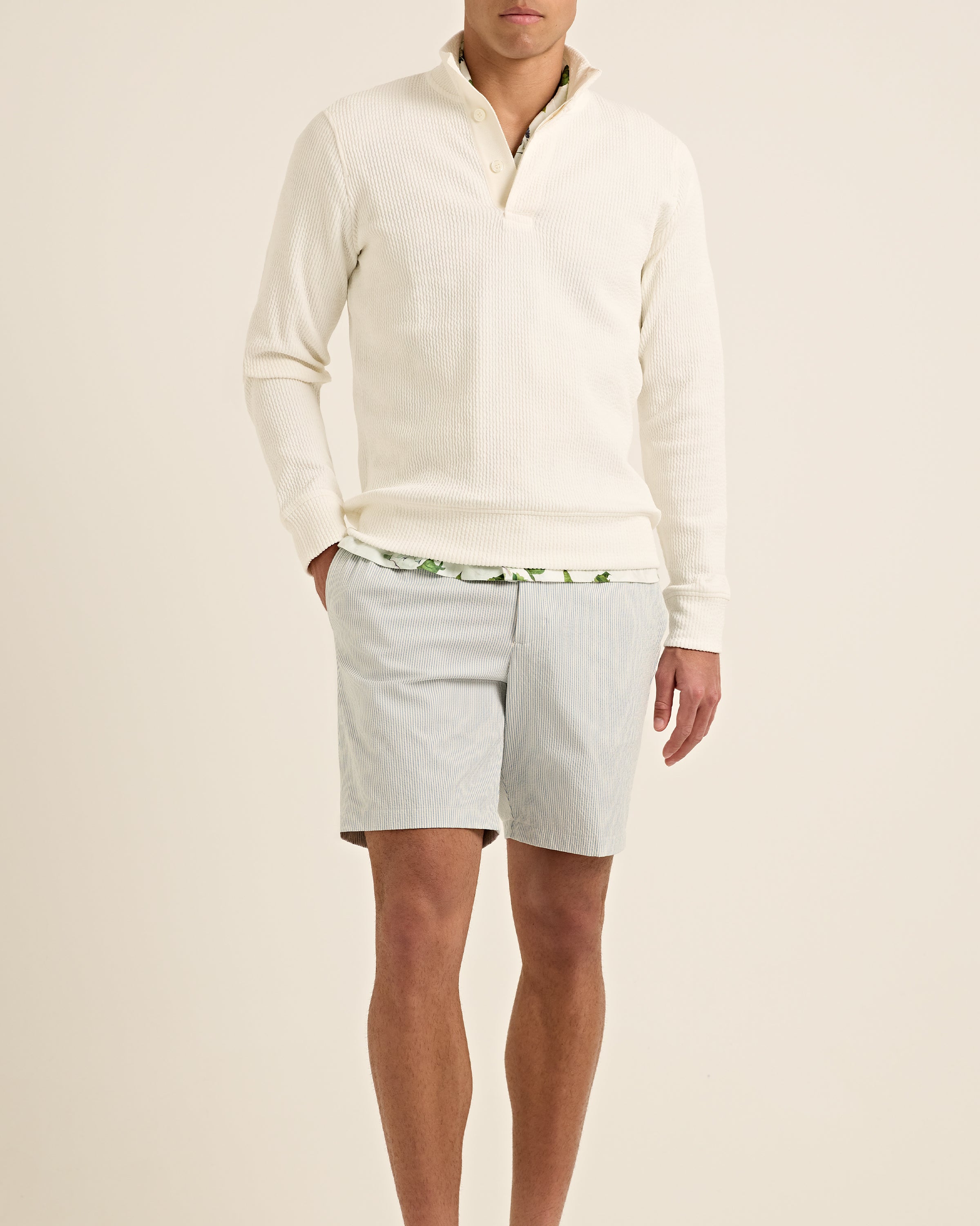 The Cornell moves with the same instinct. Italian-woven seersucker linen, light and breathable, designed for the days that don’t stand still. The elasticated waistband shifts with ease, the tubular drawcord keeping everything in place without a second thought. No structure, no stiffness - just shorts built to move as freely as you do. Run, pass, chase, score. The game never really ends.