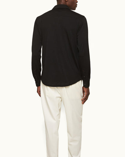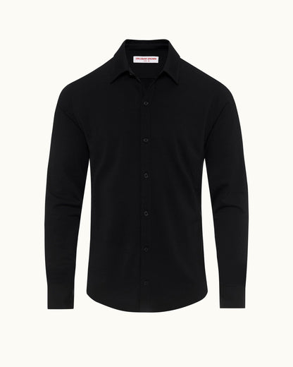 This innovative black Giles shirt is made from the highest quality Merino wool. Merino is super breathable and moisture-wicking with great thermal control. It's also soft and crease-resistant with natural stretch. The Gile's flattering curved hem and slim silhouette make you look and feel your best.