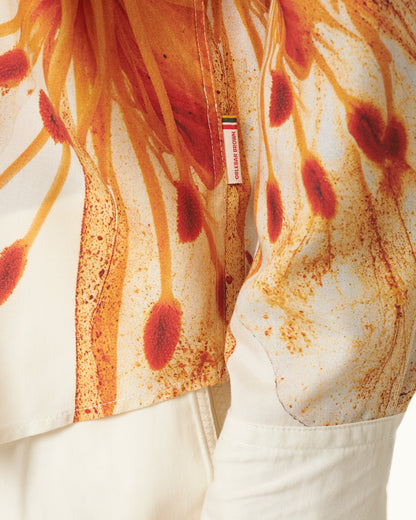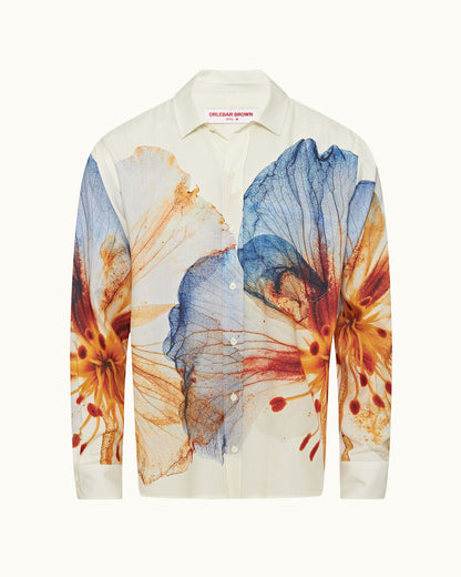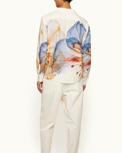 Go for laidback tailoring and big colours with our Grasmoor shirt, featuring an exclusive print made of 'Imagination Flowers'. The stunning florals pop out against the white fabric base for a statement look. This long-sleeved shirt is finished with a classic collar and single chest pocket, a Grasmoor signature. Behind the Artwork Over 300 flowers were collected and arranged to create this digital floral print. After they were picked, dried and photographed, the petals were added to a digital database and fed through AI software to create bold new species of flowers that we've called 'Imagination Flowers'. We've carefully edited the colourful design to appear on this Grasmoor shirt.