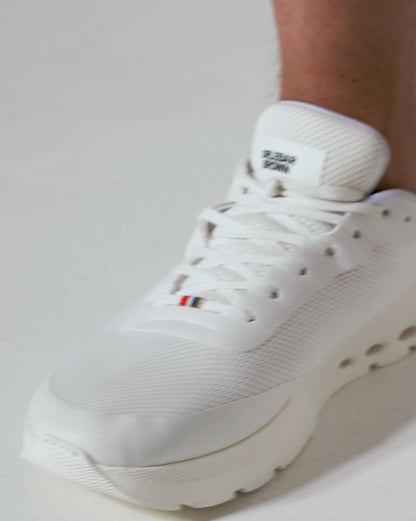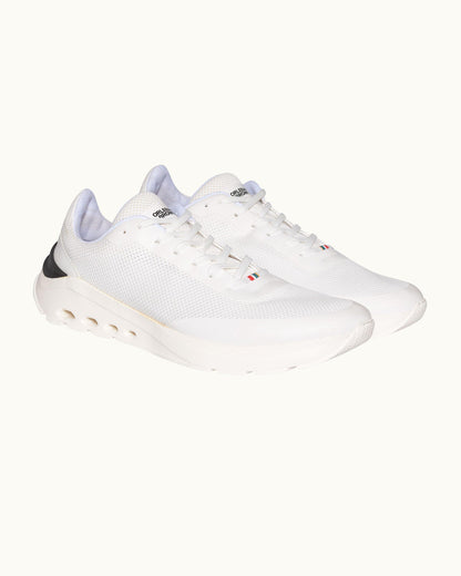HYDRO .B is a shoe that you can swim in. This water-ready black and white deck shoe is one of our most technical trainers. With an innovative sole design that enables quick water drainage to a perforated insole and a seamless upper, this shoe is lightweight, comfortable and made for holidays.