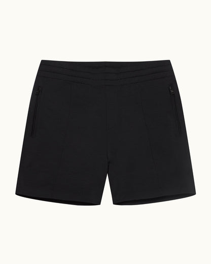 The pin-tuck front adds a tailored touch, while side pockets and back zip pockets handle passports, keys, and last-minute boarding passes with quiet efficiency. The drawcord waistband, complete with tonal eyelets and bullet cord ends, offers an adjustable fit with just the right hint of design cred.