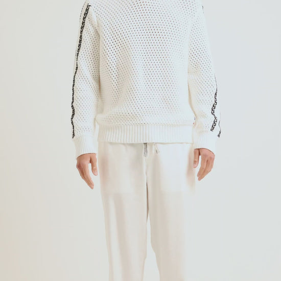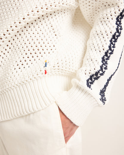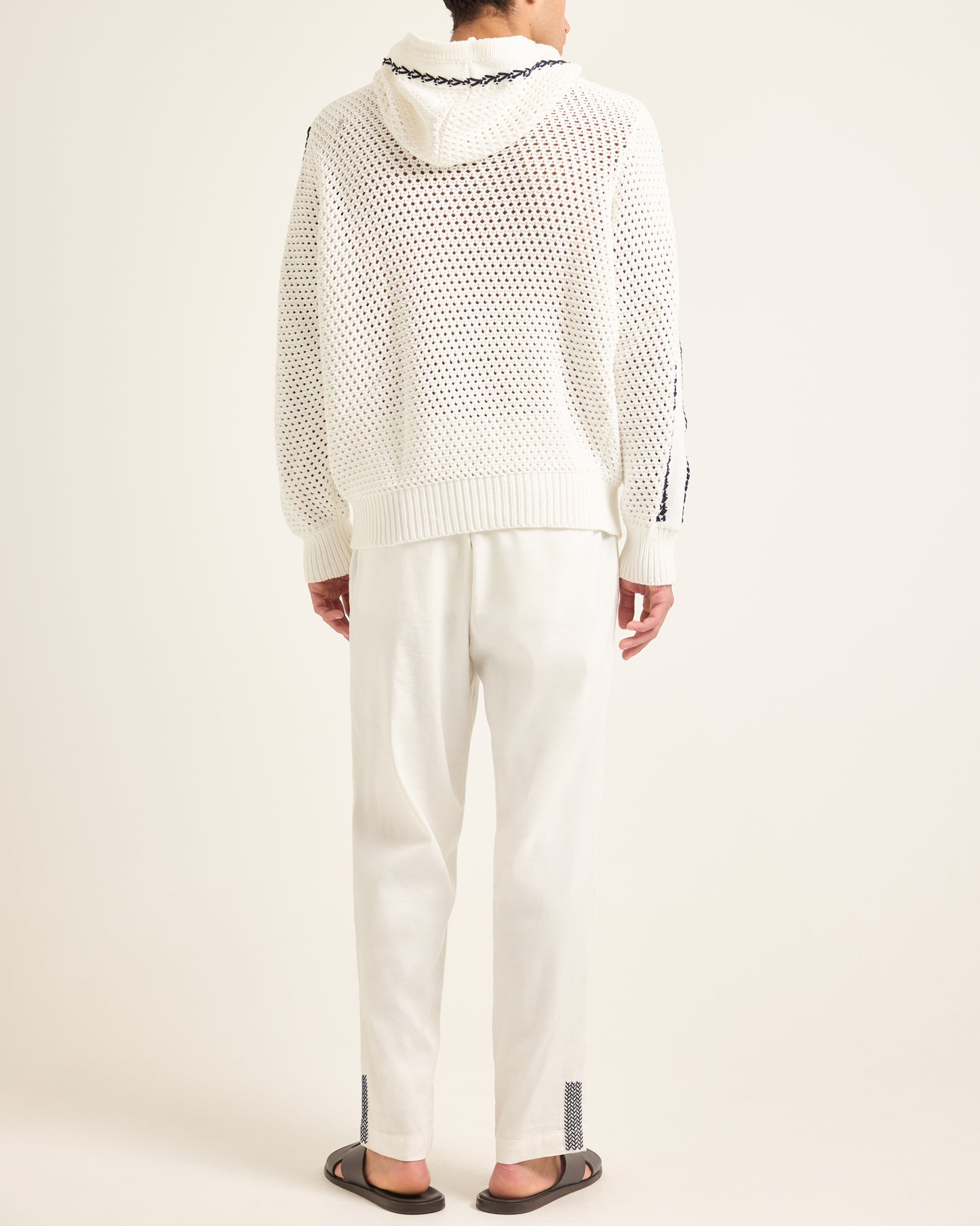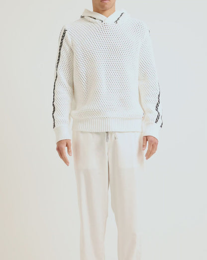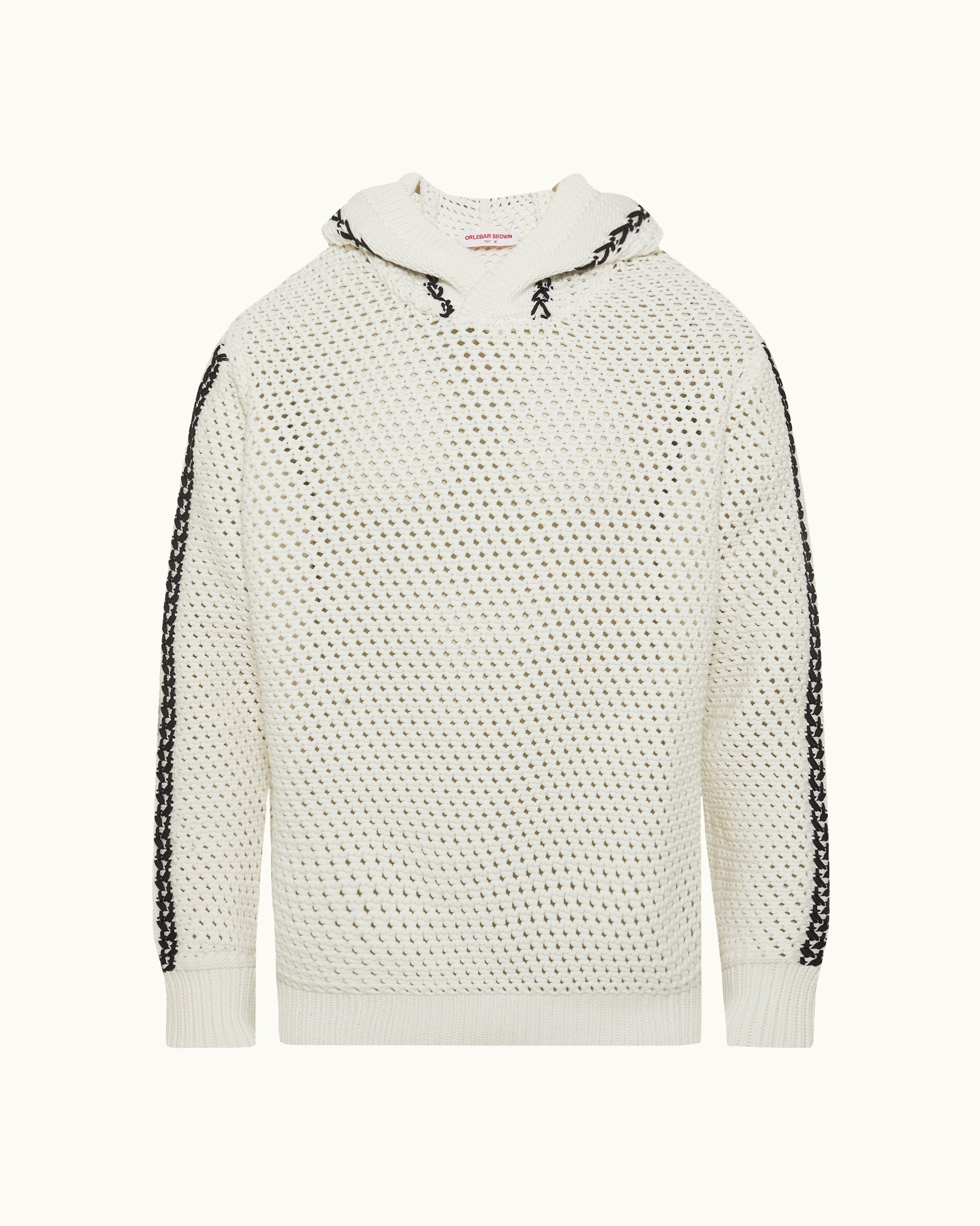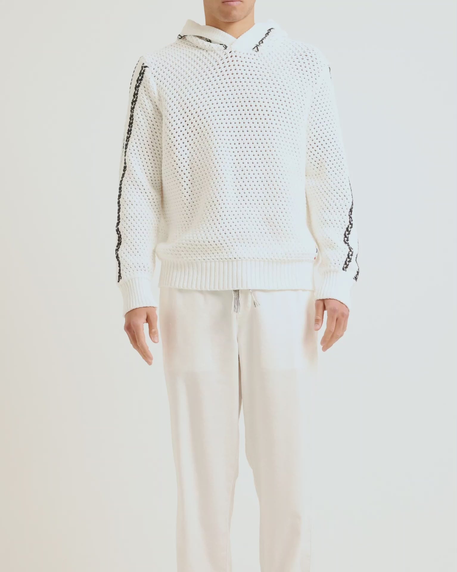 • Crochet-effect knit stripe along hood opening & sleeves, designed in-house
