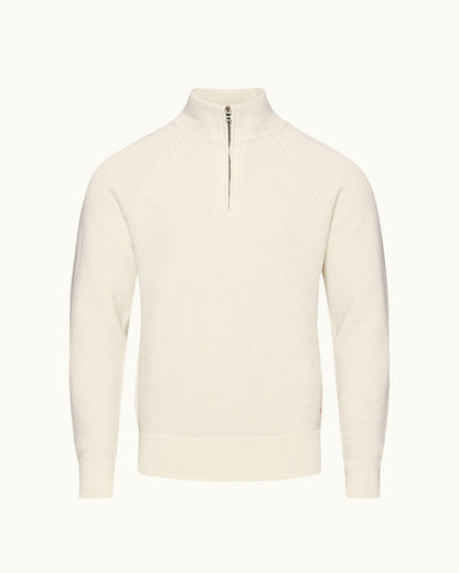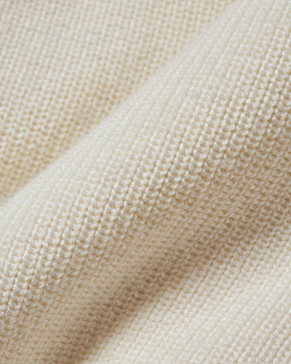 Our white funnel neck Lennard jumper boasts a relatively thick ribbed Merino knit crafted in Italy for a premium look and feel. Merino is soft, resilient and crease-resistant. Plus, it's temperature regulating with natural stretch for the ultimate comfort. This chic knitwear style is finished with half-zip fastening and fully fashioned seams for the best quality.
