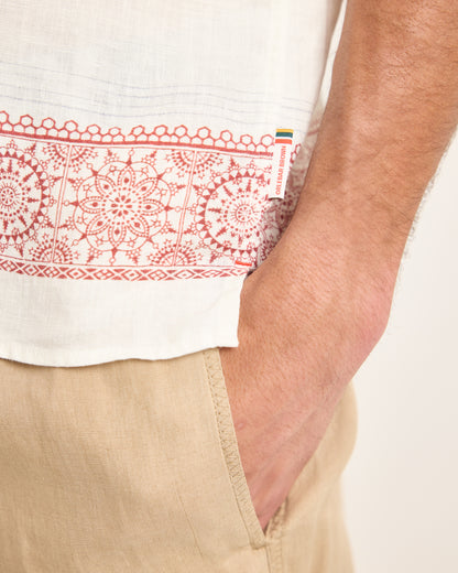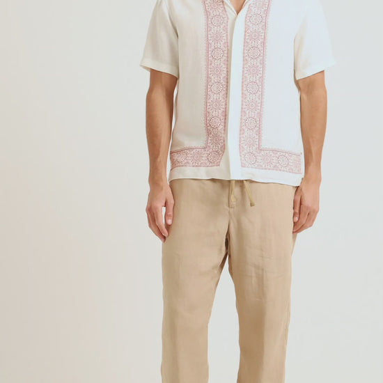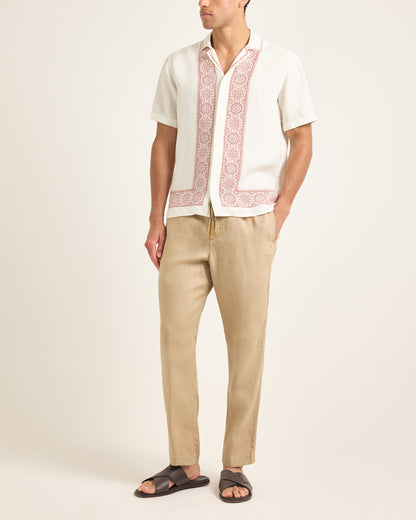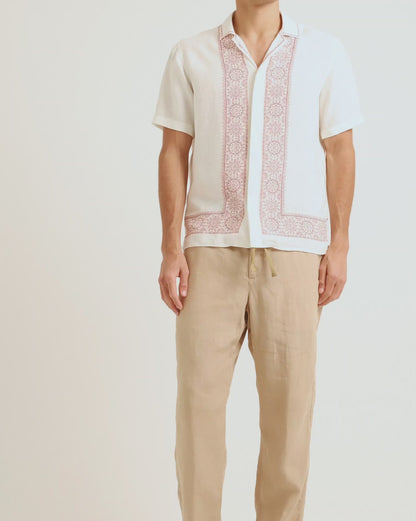 You find yourself in the honeyed hours after a leisurely lunch; pale parasols line an immaculate pool, their mirrored reflections dancing across water. The Maitan is at home here. Woven linen, the open Capri collar frames the neck like a painter’s flourish, revealing just enough sun-kissed skin to suggest idle afternoons and impeccable taste. In that shimmering pause between day and dusk, style and pleasure go hand in hand. Feel Summer.